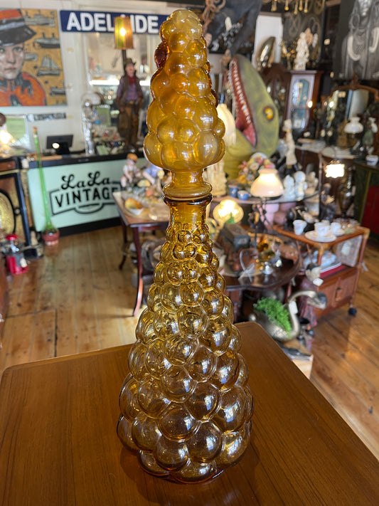 Vintage Empoli Amber Bubble Glass Genie Bottle – Italy, Mid-Century with Stopper