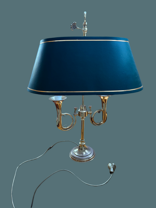 Vintage French Twin Arm Horn Form Brass Table Lamps