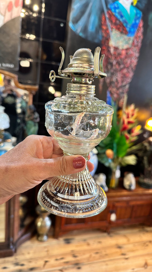 Sold outVintage Glass Oil Hurricane Lamp