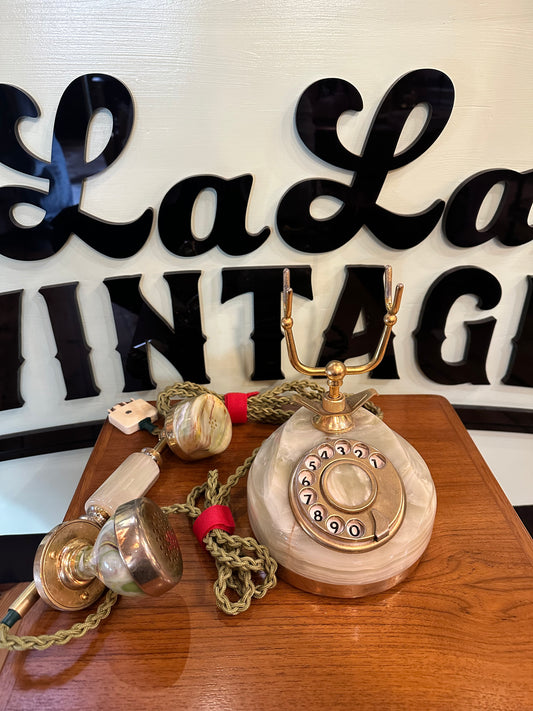 Vintage Onyx and Green Minette Marble Rotary Dial Telephone