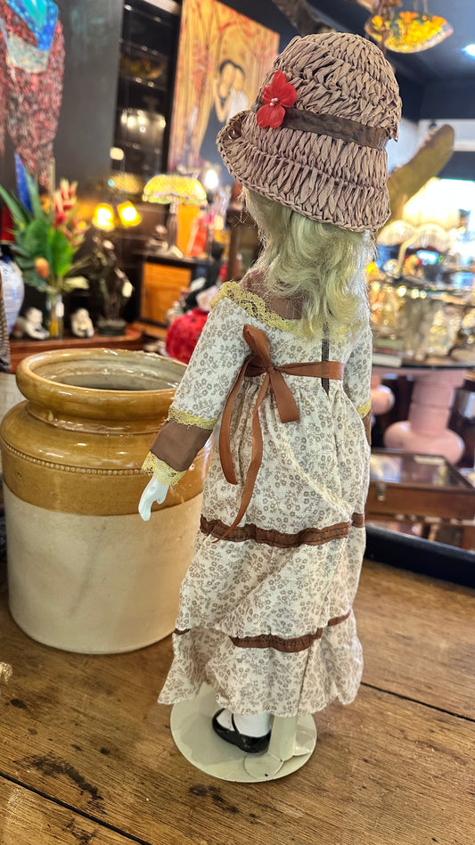 Walda Doll, 1970s Bisque Porcelain with Soft Body on Stand