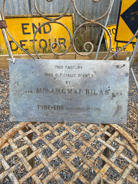 1970 Commemorative Building Plaque - Tyre-Lug Factory Opening