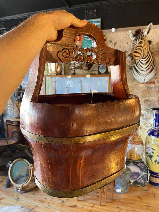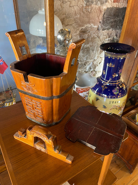 Antique Chinese Wooden Wedding Bucket – Hand-Carved