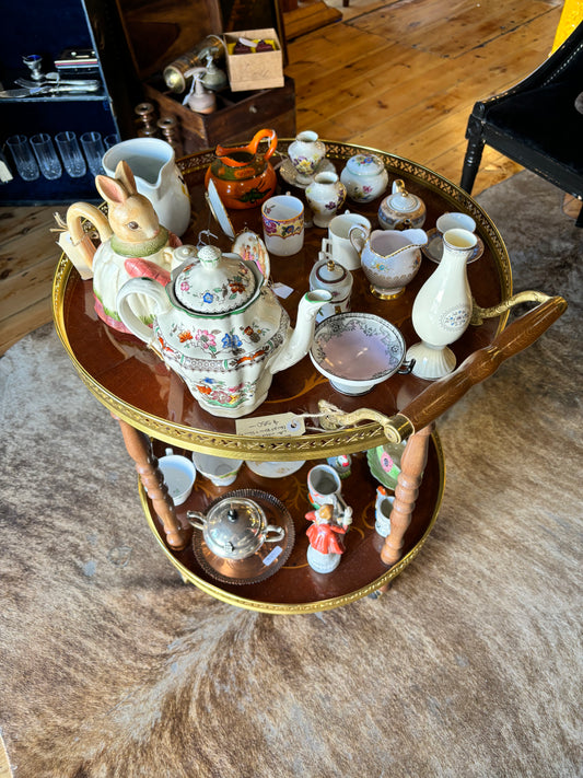 Two Tier Drinks Trolley Brass And Wood Inlay