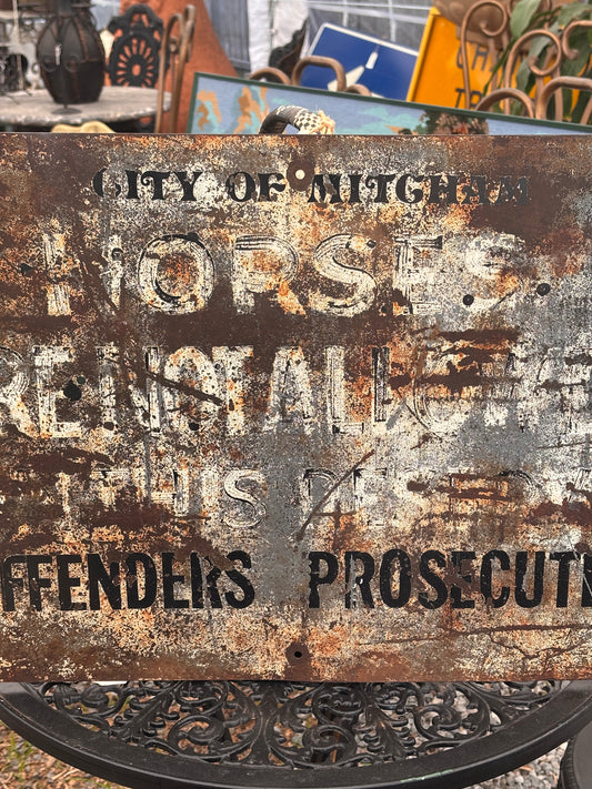 Early 20th Century City of Mitcham Horses Prohibited Sign – Rare South Australian Council Sign