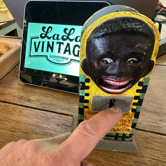 Black Americana Cast Iron Fortune Penny Saver Mechanical Bank