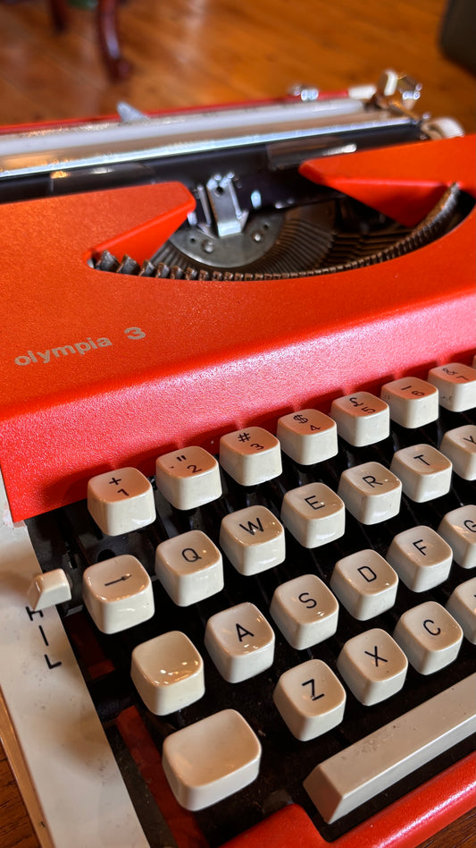 Vintage Olympia Model 3 Typewriter – Orange & Cream – c.1970s with Case