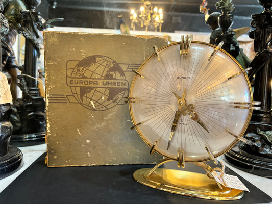 Extremely Rare Mid Century Starburst Europa 7 Jewel Mantle Clock