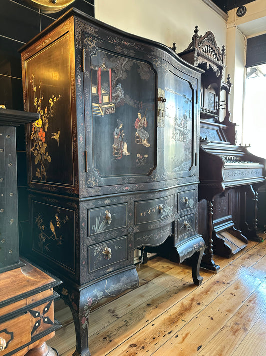 Chinese Black Lacquered Cabinet with Stunning Decoration