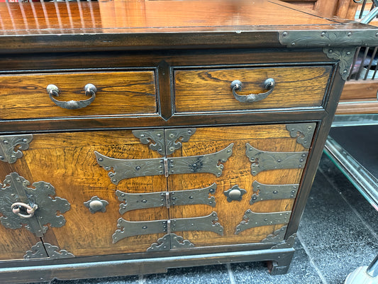 Korean bandaji (blanket) chest with brass hardware, 4 drawers with 2 lower doors
