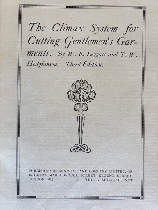 The Climax System For Cutting Gentlemen’s Garments. Tailoring Book. W. E. Leggatt, T. W. Hodgkinson. Third Edition. c1920. Minister & Company.