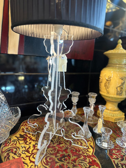 Vintage Clear Acrylic Lucite Table Lamp with Black Shade – Mid-Century Modern Decor Light