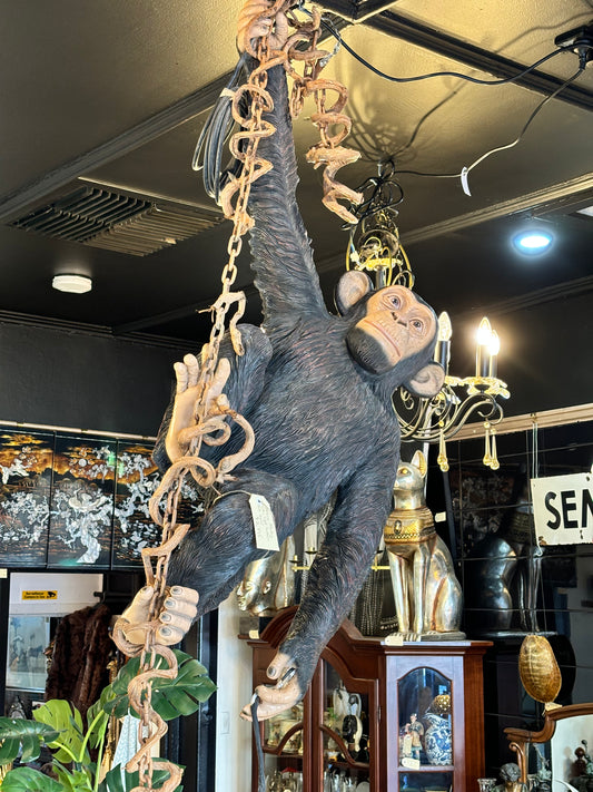 Life-size Hanging Fibreglass Chimpanzee Ceiling Light