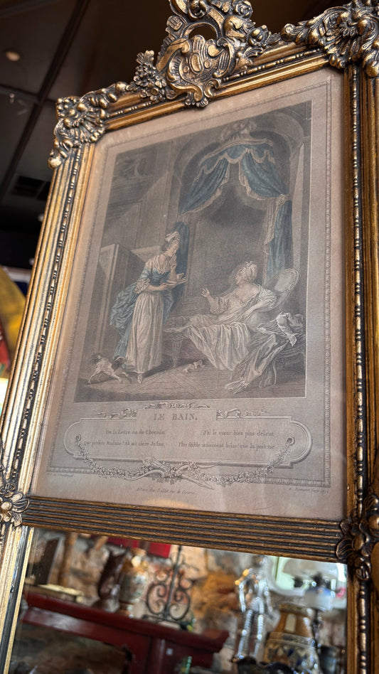 French Gilt Pier Mirror with Engraving – “Le Bain” (Antique c1890)