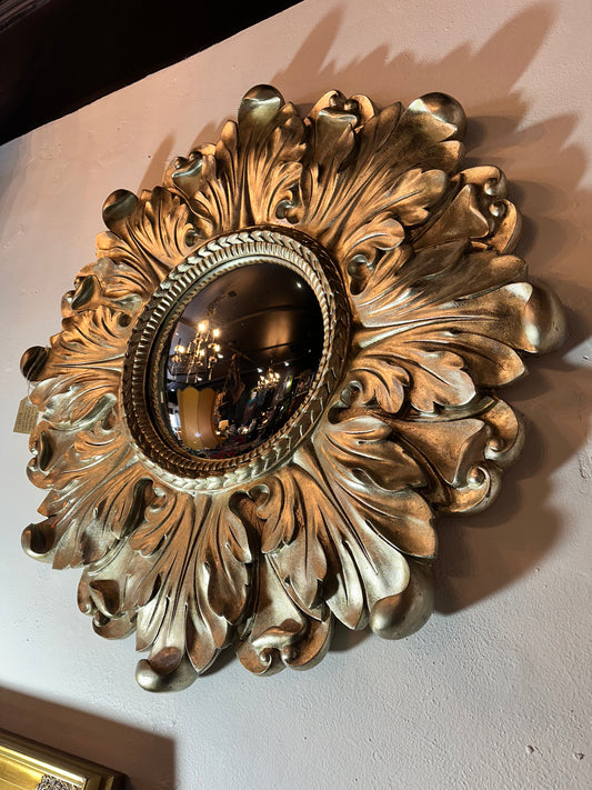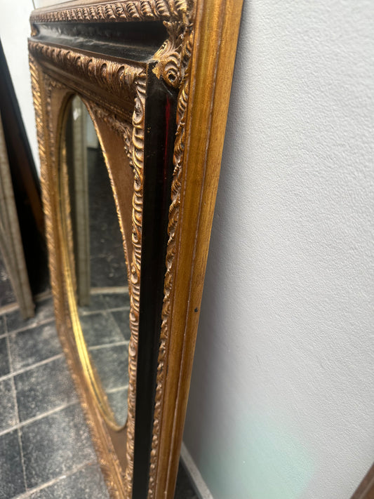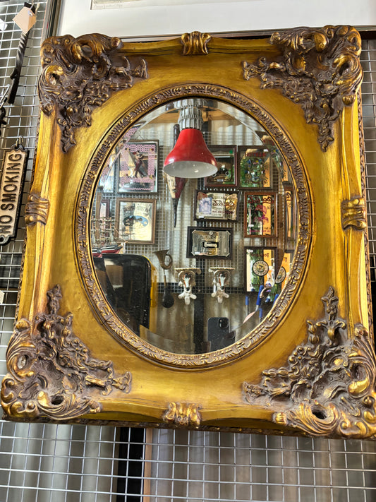 Mirror - Oval Bevelled Edge Mirror in Ornate Gold Rectangular Frame
