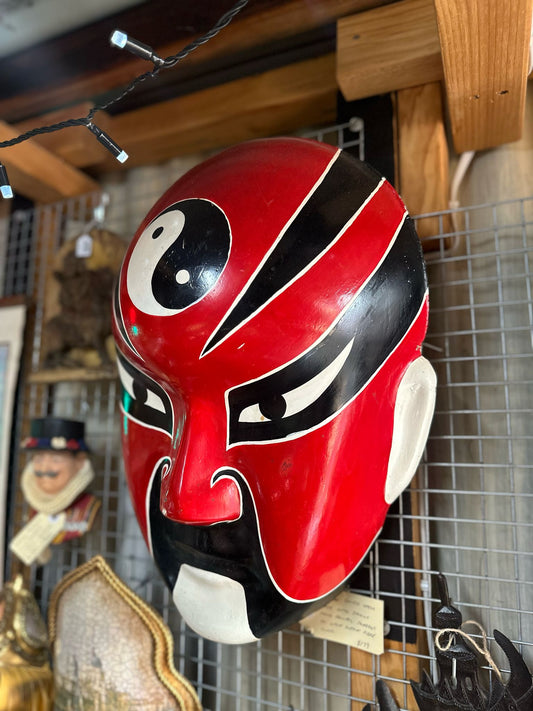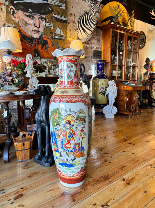 Mid-Century Asian Figural Lamp with Custom Blue Shade – 1950s Orientalist Decor (80cm)