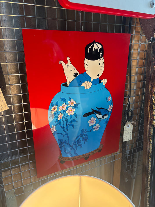 Tintin “The Blue Lotus” Lacquered Wooden Wall Panel – 40×30 cm Hergé Artwork