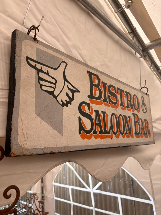 Vintage “Bistro & Saloon Bar” Hand-Painted Solid Timber Particleboard Sign – Retro Café & Bar Decor (68 cm)