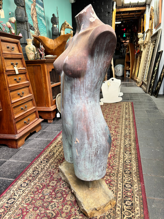 Female Bust Statue Painted Aged Bronze Finish on Solid Stone Base