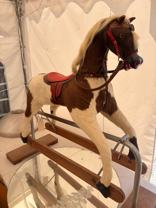 Vintage Rocking Horse with Real Horsehair Hide & Leather Saddle | c.1940s–1960s