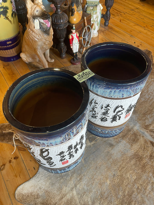 Pair of Large Majolica Glazed Asian Planters – Rare and Stunning