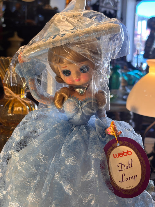 Vintage Webb Doll Lamp – Blue Lace Dress – Original Box & Tag – Korea c.1970s