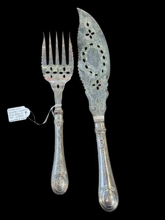 Silver Fish Serving Set Victorian 1860s Walker & Hall Extremely Ornate