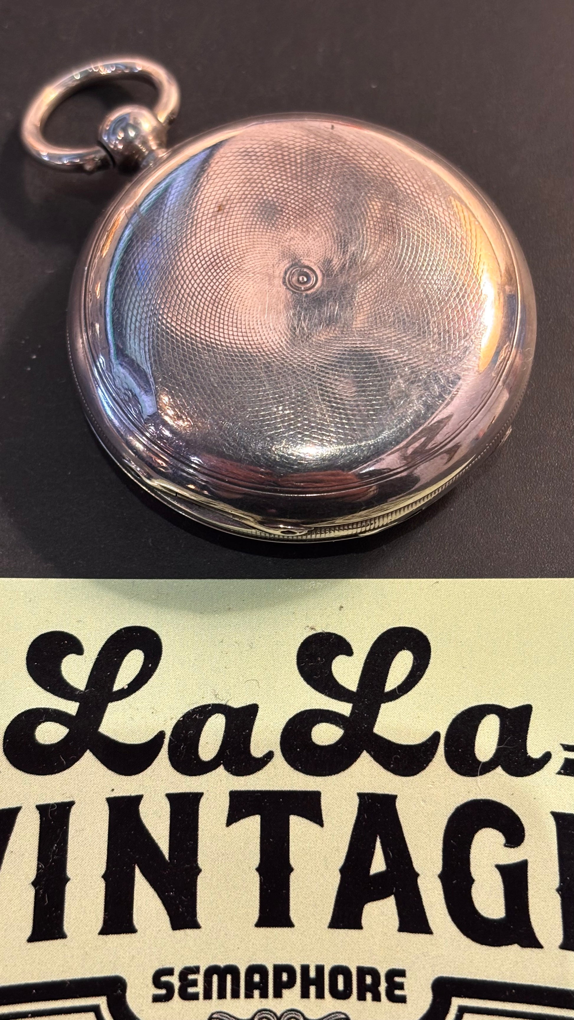 A classic Victorian-era sterling silver pocket watch dated to 1890, fully hallmarked at the Birmingham Assay Office. Crafted by W.E., likely William Ehrhardt, a respected Birmingham watchmaker of the late 19th century.