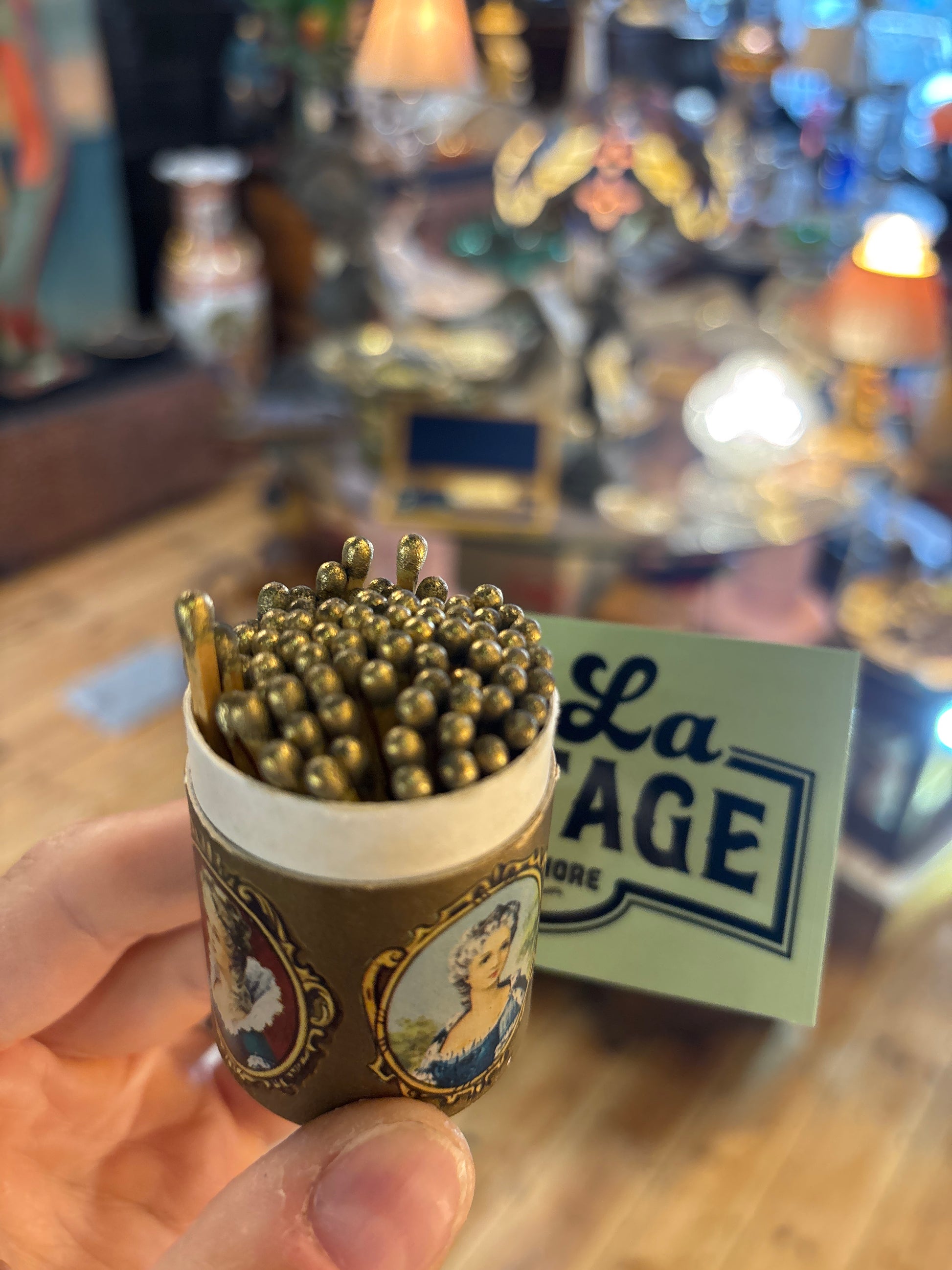 A tiny treasure with big charm — ideal for collectors of match memorabilia, Victorian revival décor, or early novelty packaging.