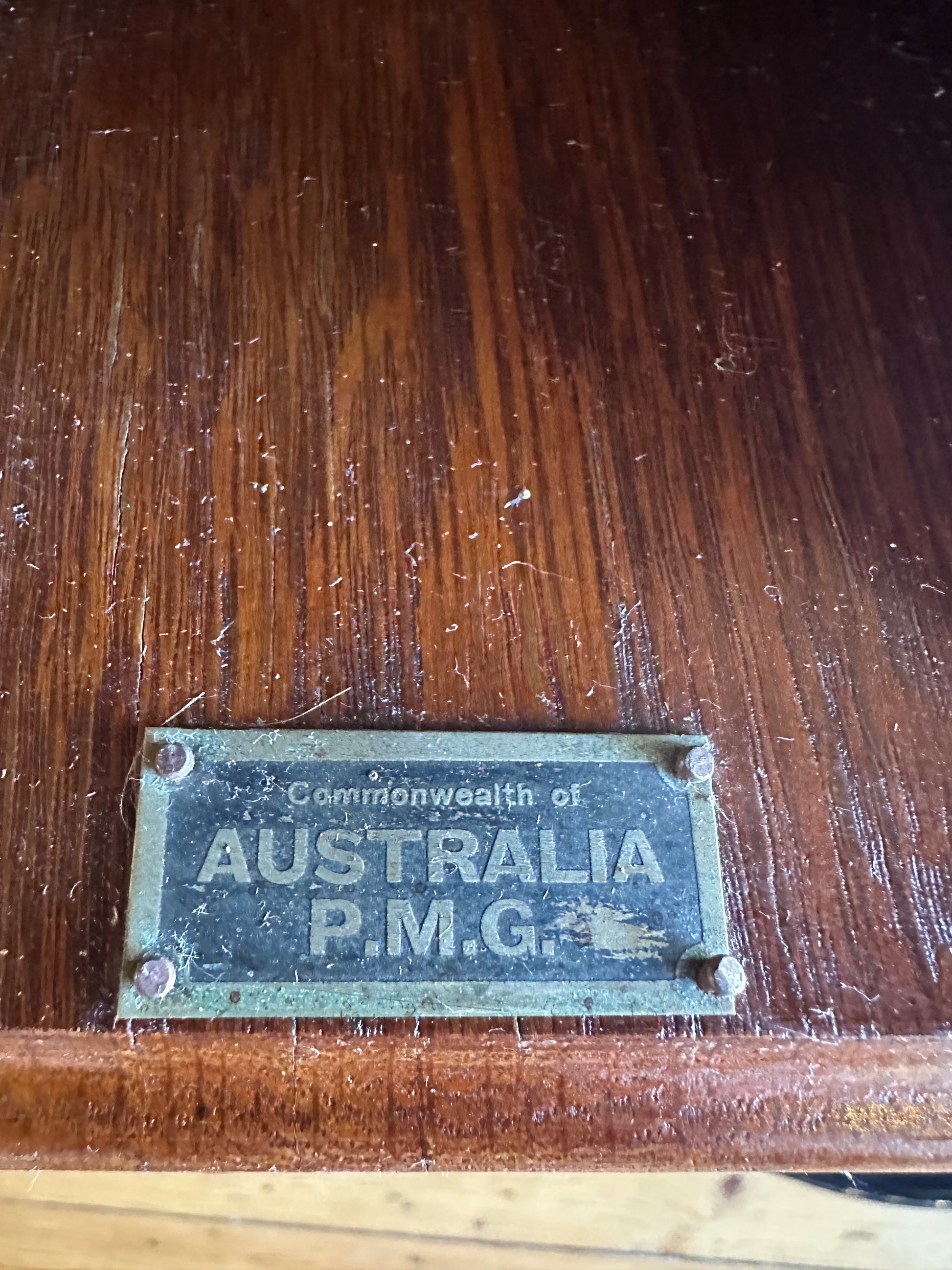 The Antique Commonwealth of Australia PMG magneto oak wall telephone, a relic of early to mid-20th century, showcases the governmental legacy of the Postmaster-General's Department.