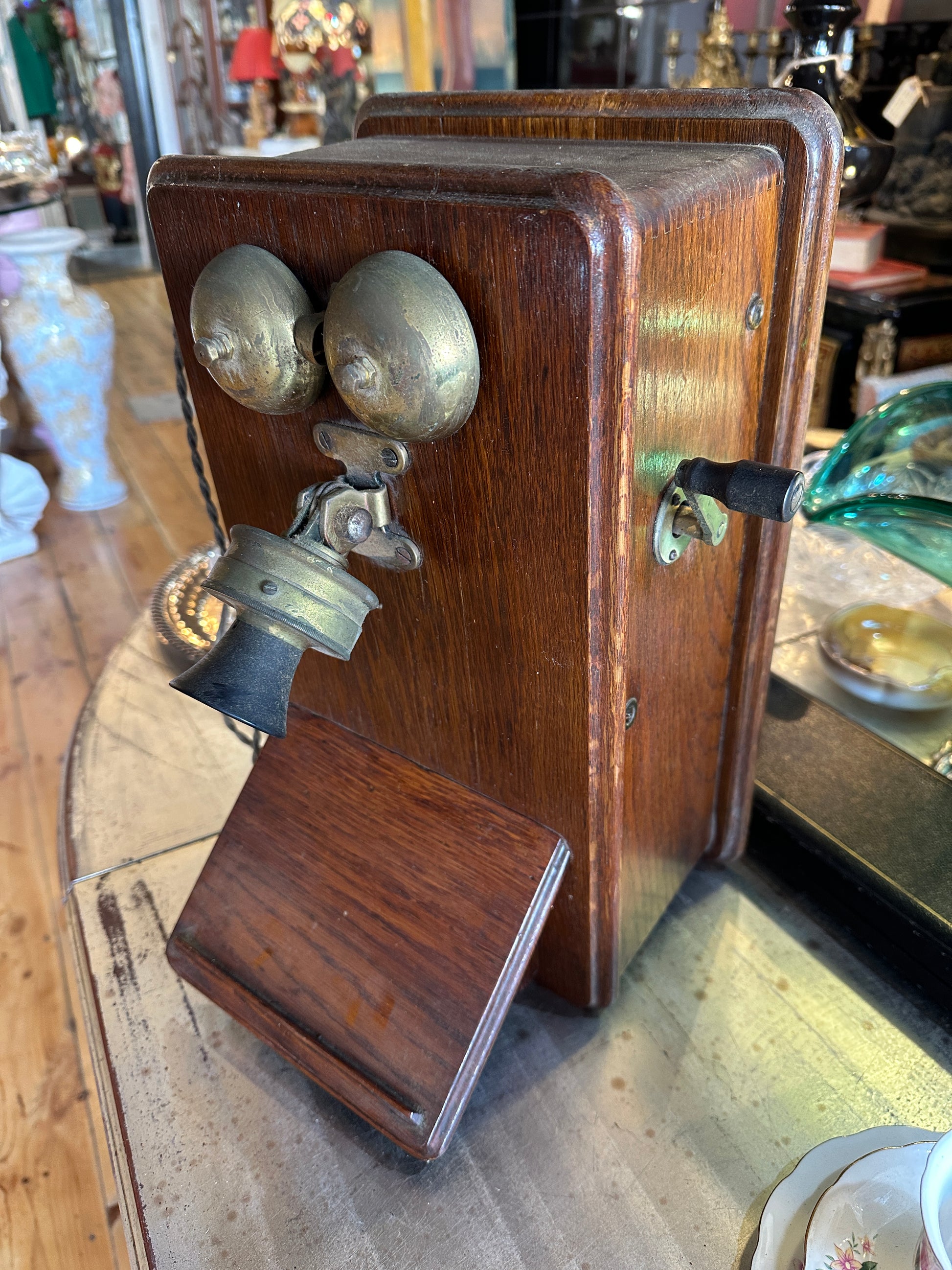 Antique Commonwealth of Australia PMG magneto oak wall telephone