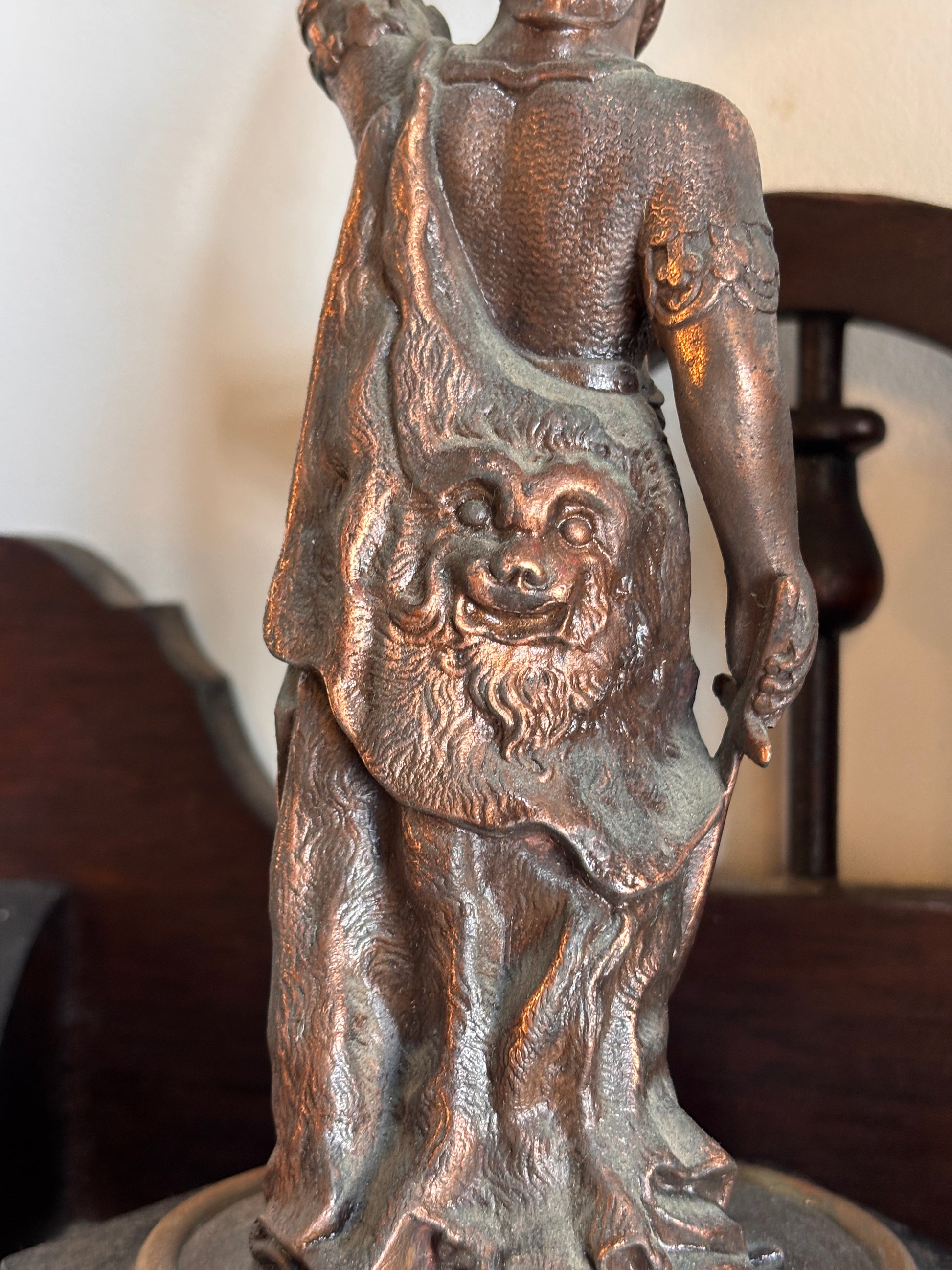 Antique Figural Spelter Oil Lamp c.1900 – Pressed Glass Font, 54 cm