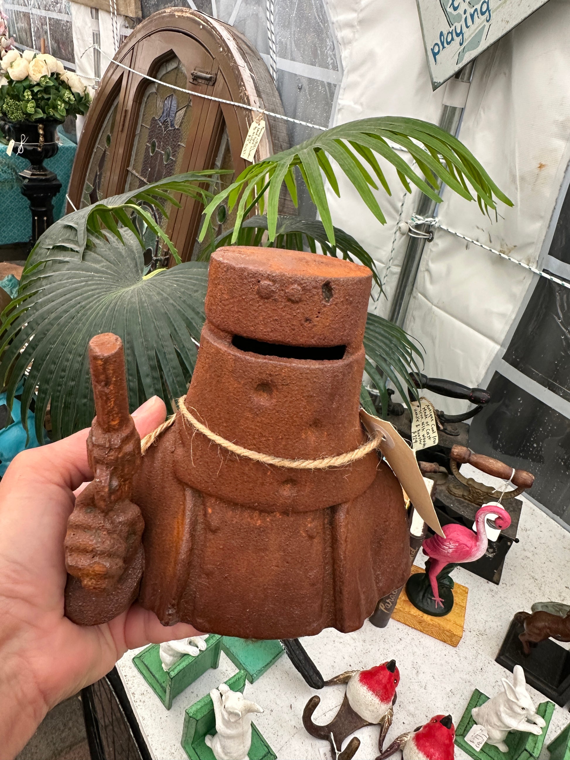 Expertly crafted from cast iron, the Cast Iron Ned Kelly Coin Bank stands at 15cm tall and 17cm wide. With its durable material and impressive size, this coin bank is the perfect addition to any collection or room, providing a secure and stylish way to store your coins.
