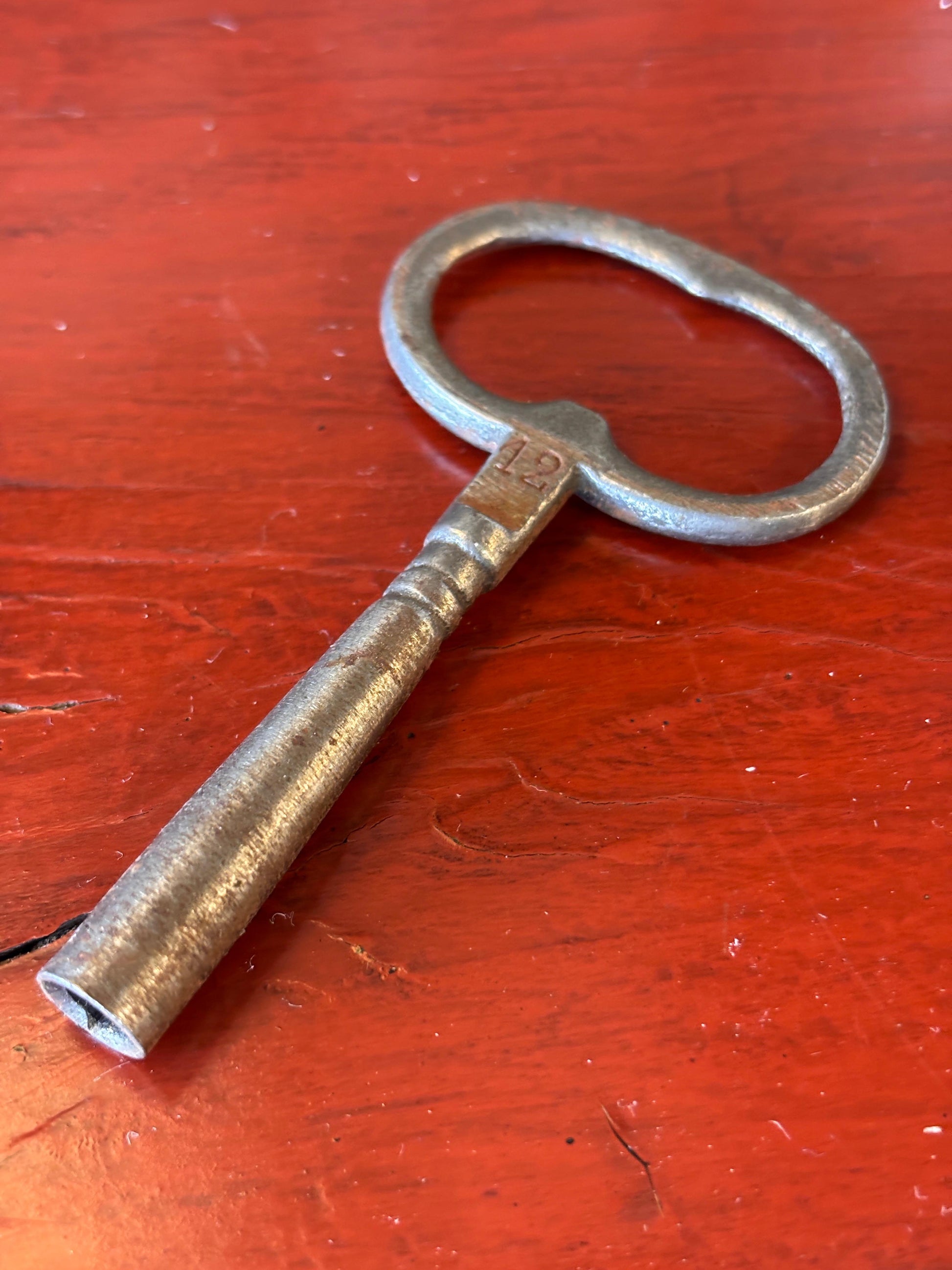 This is a genuine French pendule movement with a Brocot escapement and its original double-ended winding key.