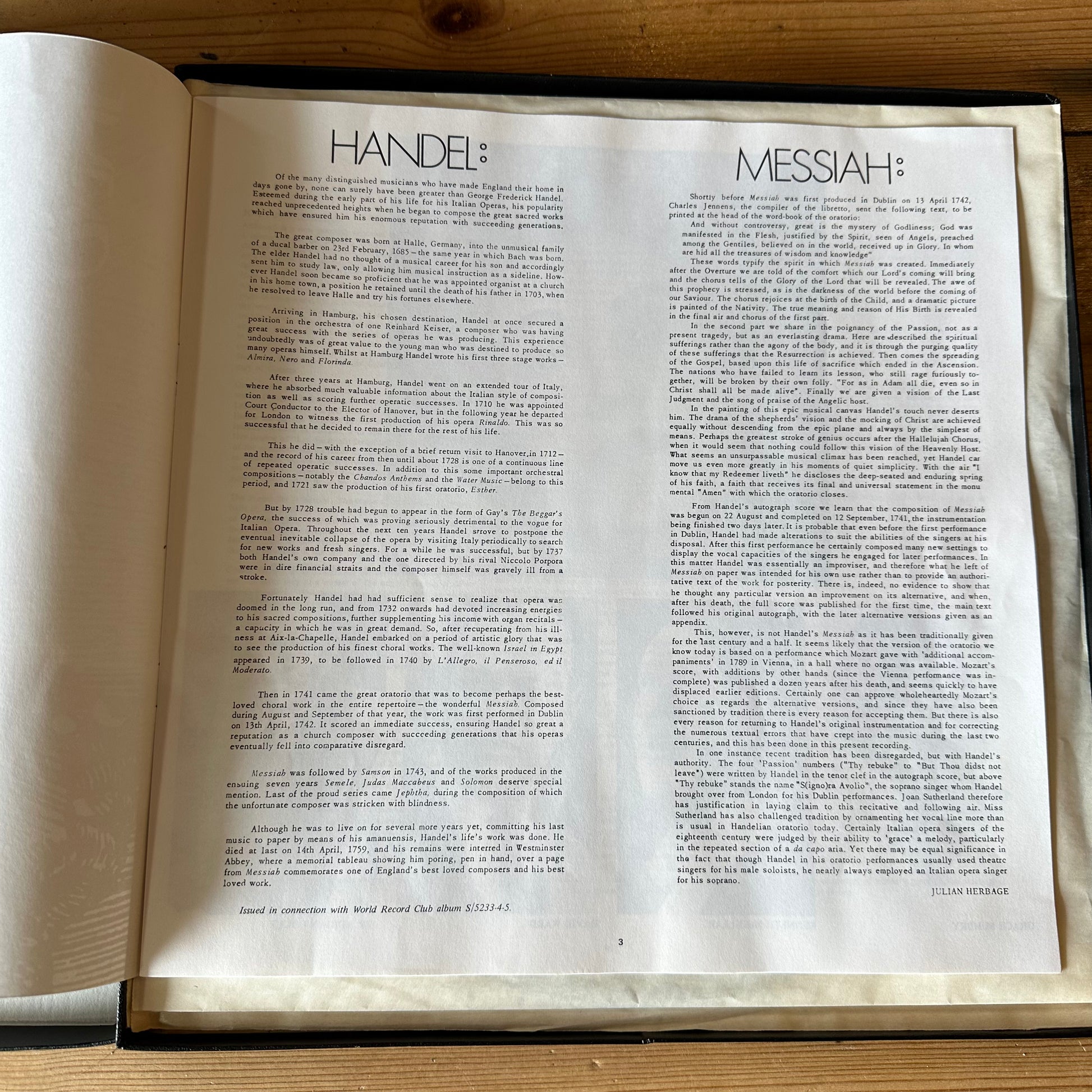 Handel's Messiah vinyl record x3 box set