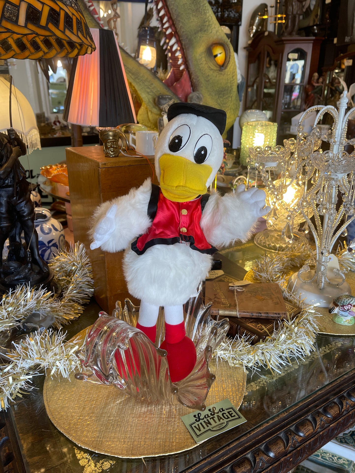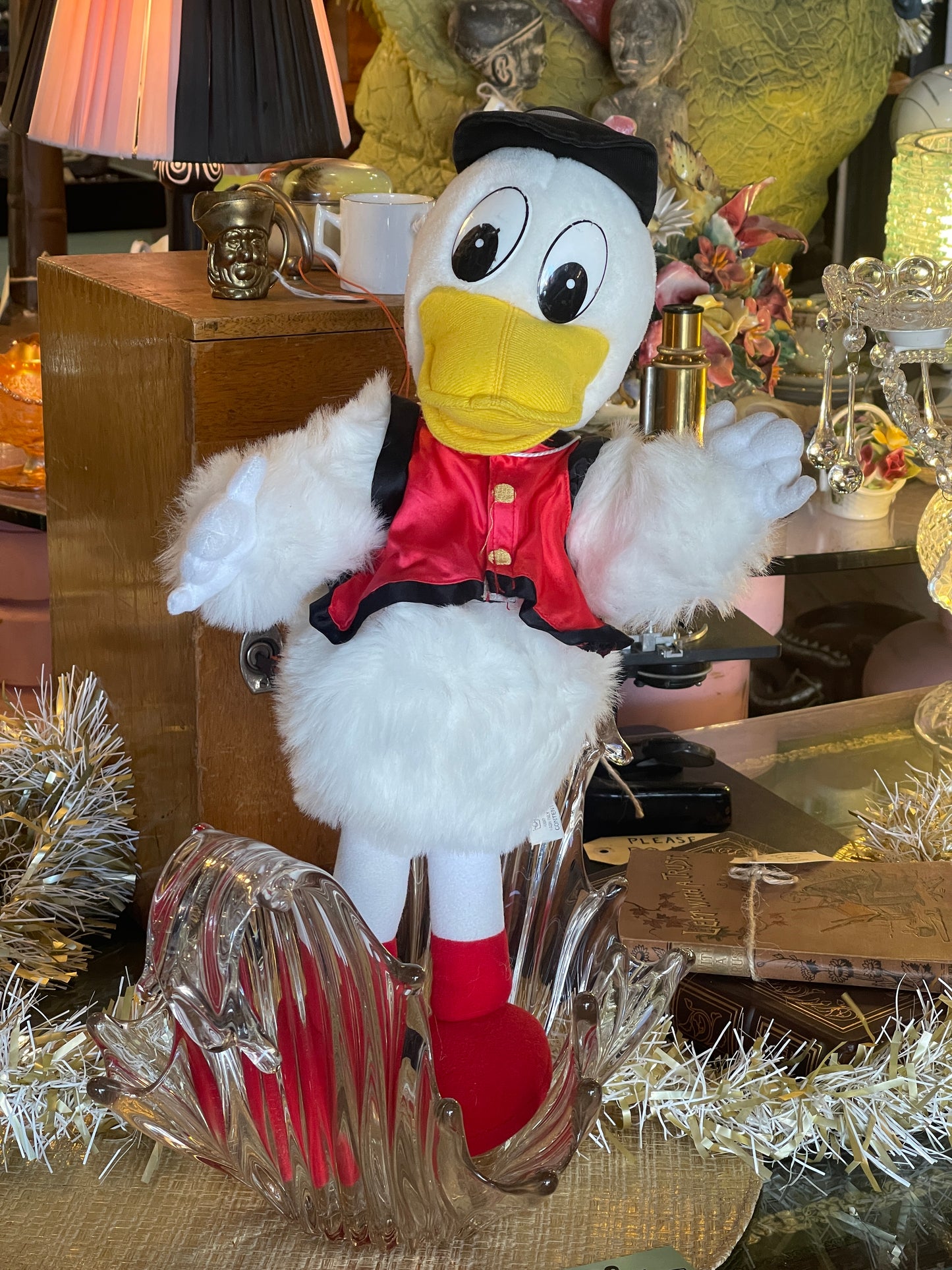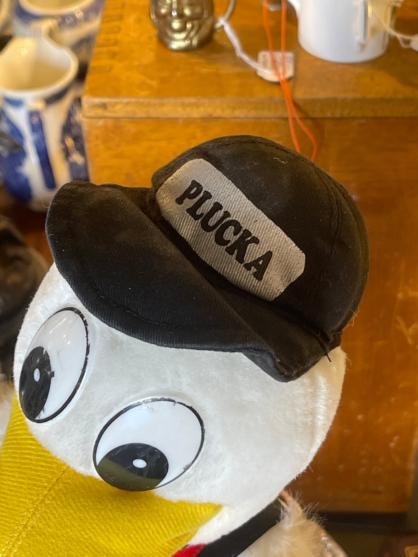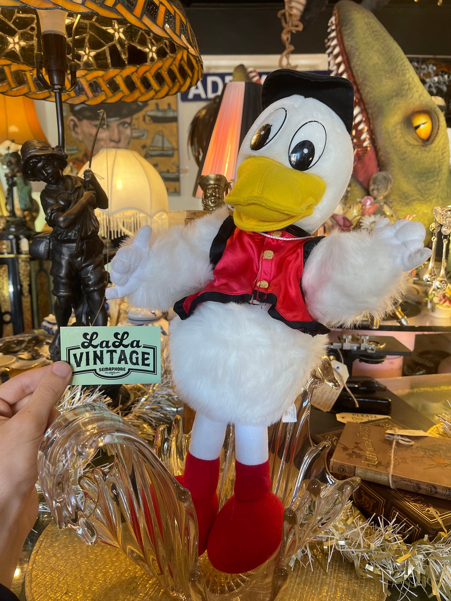 Rare and iconic 1993 Plucka Duck plush from the beloved Australian TV show Hey Hey It’s Saturday. Features soft white fur, bright red boots, and a charming red vest with a black hat, capturing the quirky personality of the fan-favorite character. A must-have retro collectible for fans of Australian television history or unique vintage decor. Great used condition for its age, bringing nostalgia to any collection.