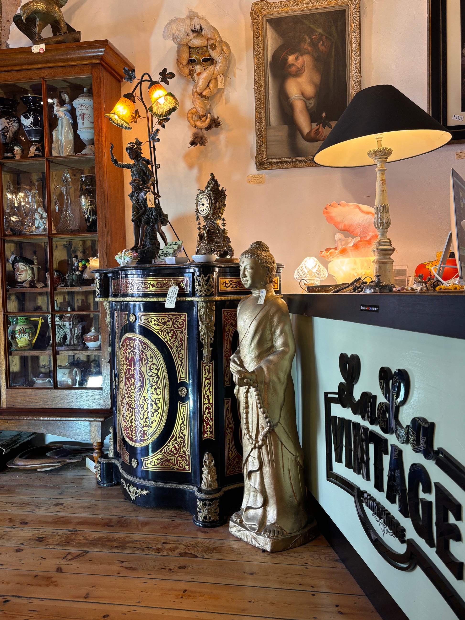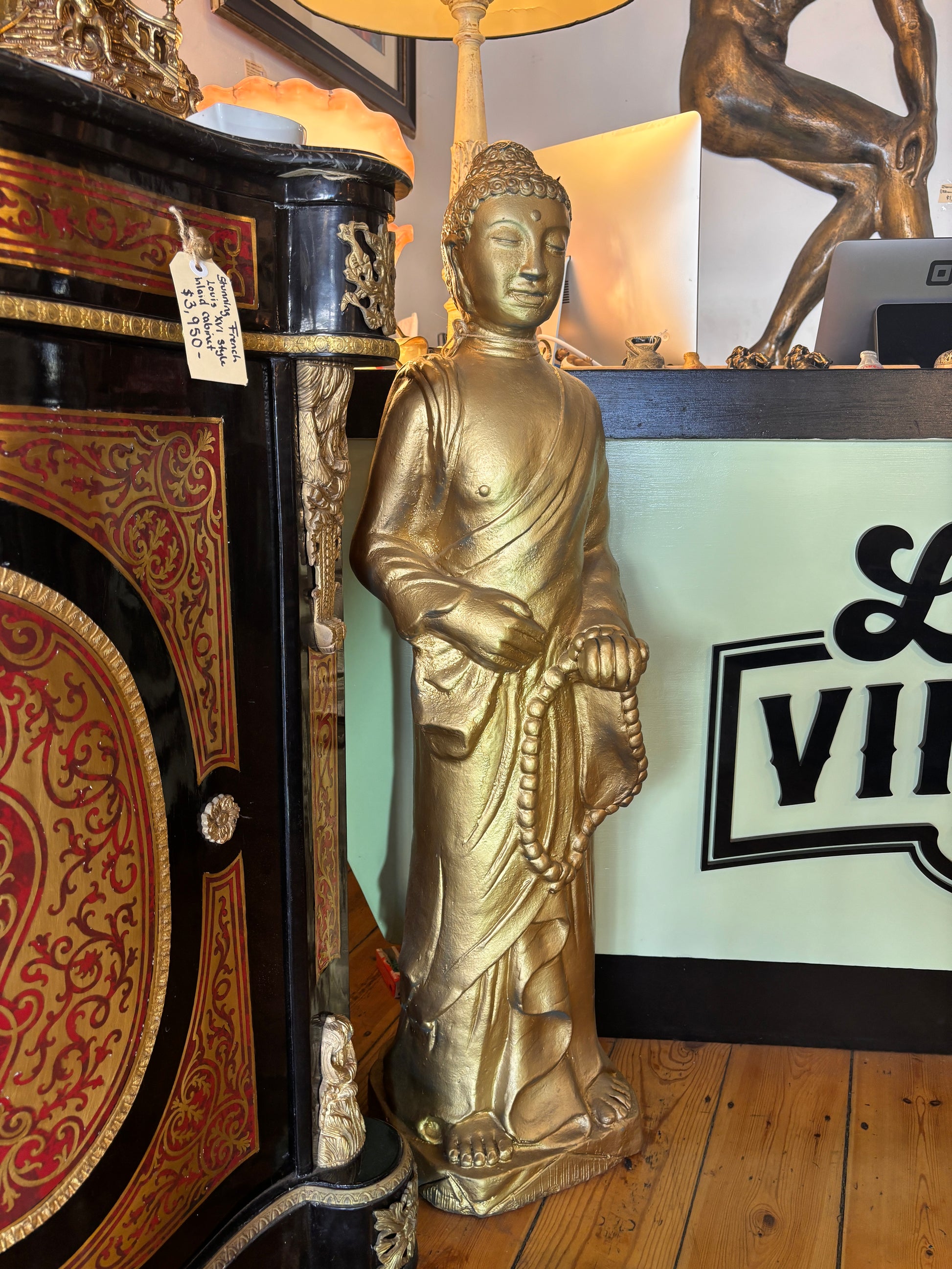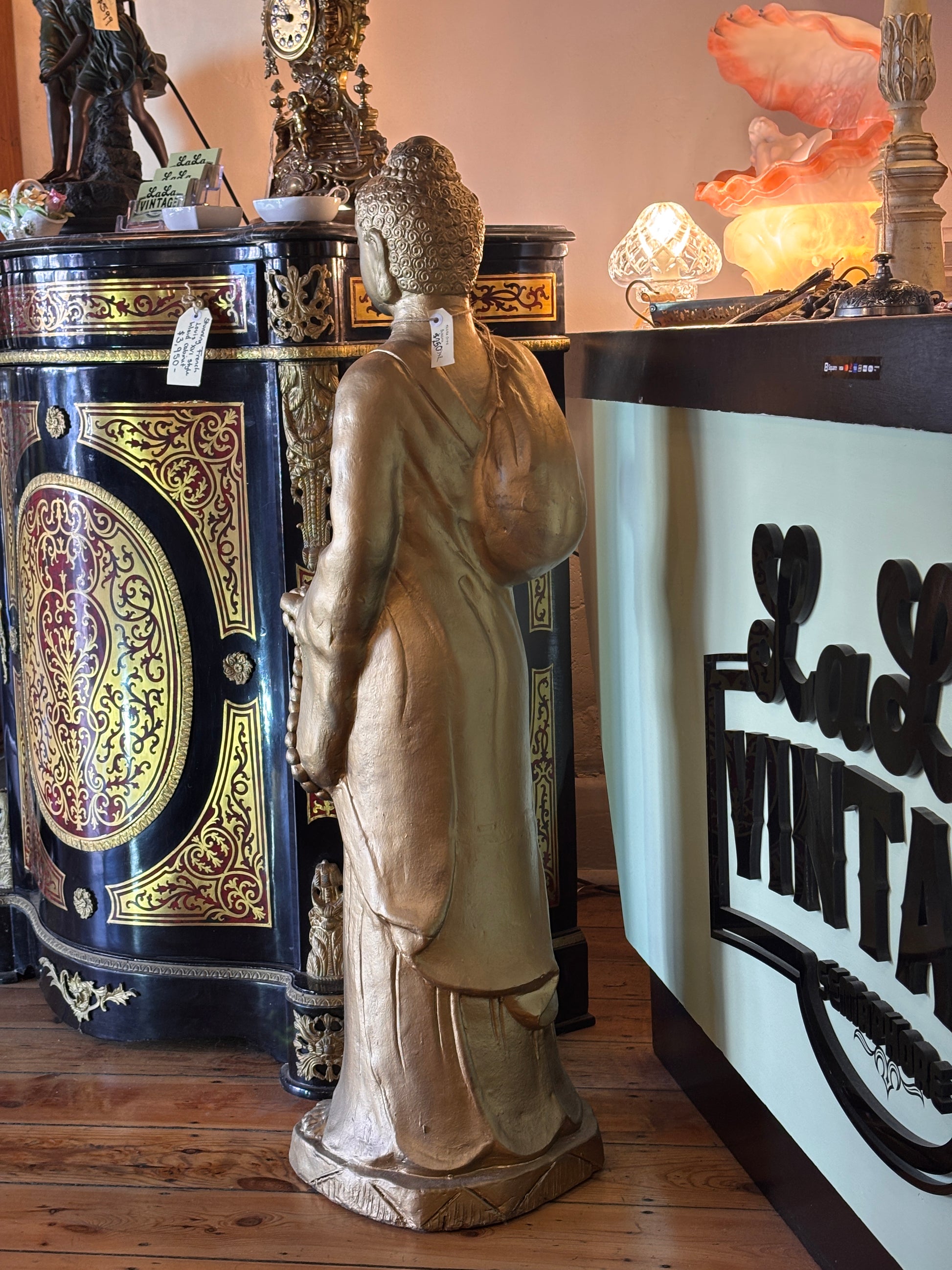 Large Gold Painted Terracotta Standing Buddha Statue 110cm – Asian Decorative Figure