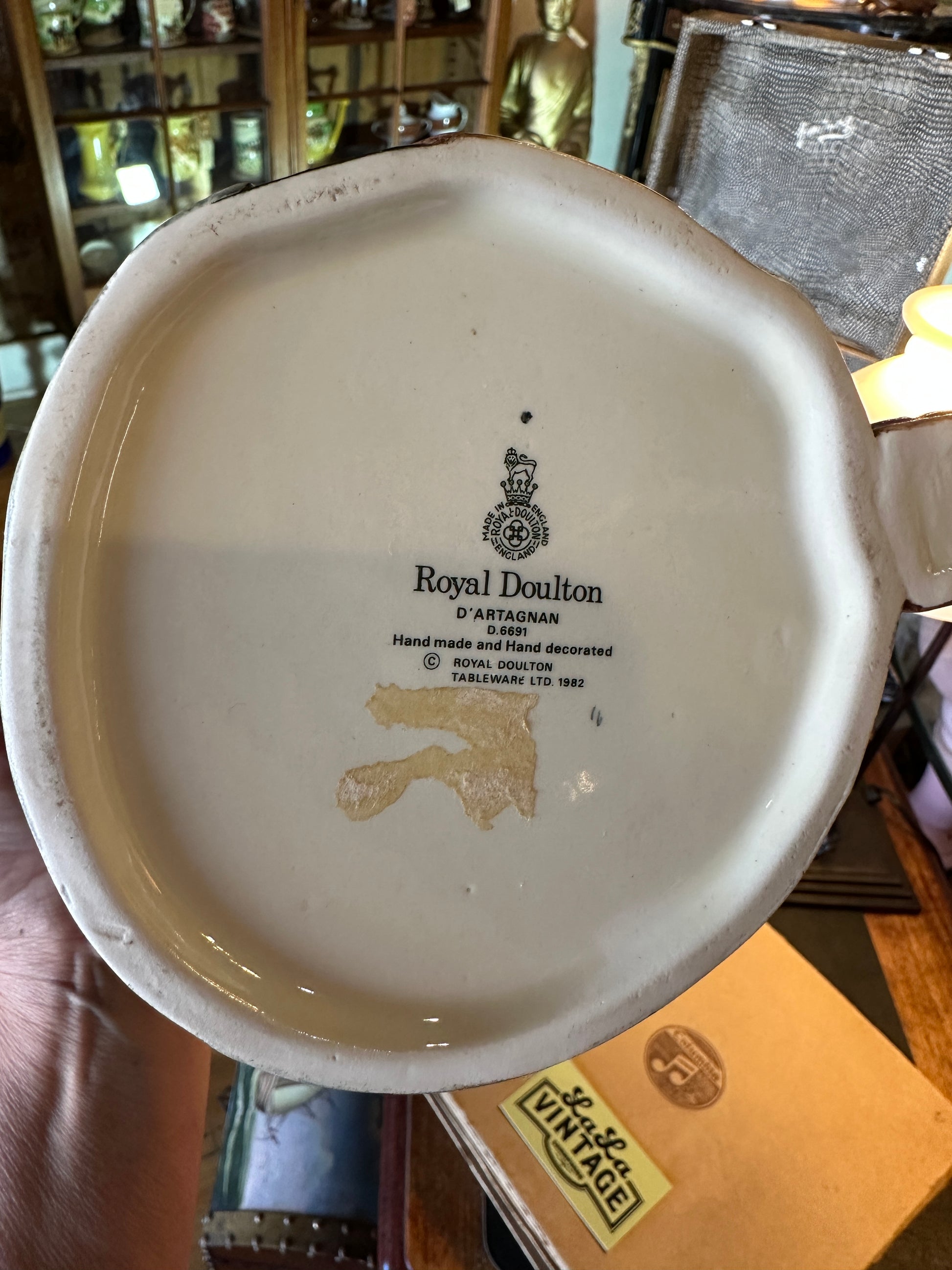 Expertly crafted, this vintage Large Royal Doulton D'Artagnan Character Jug from 1982 showcases the brand's mastery. At 19cm tall, this Toby Mug Jug features the iconic D'artagnan D6691 design, adding a touch of sophistication to any collection.