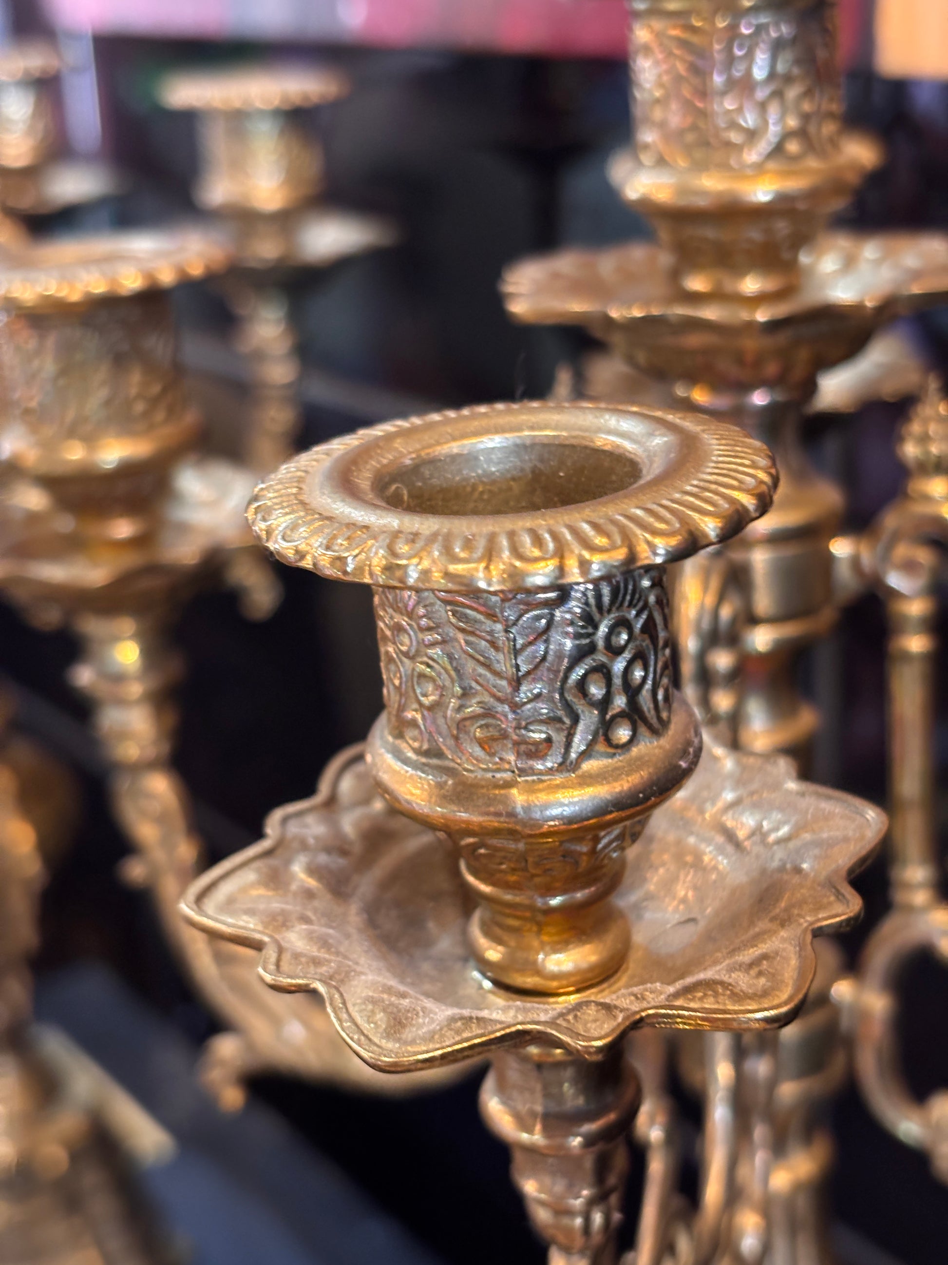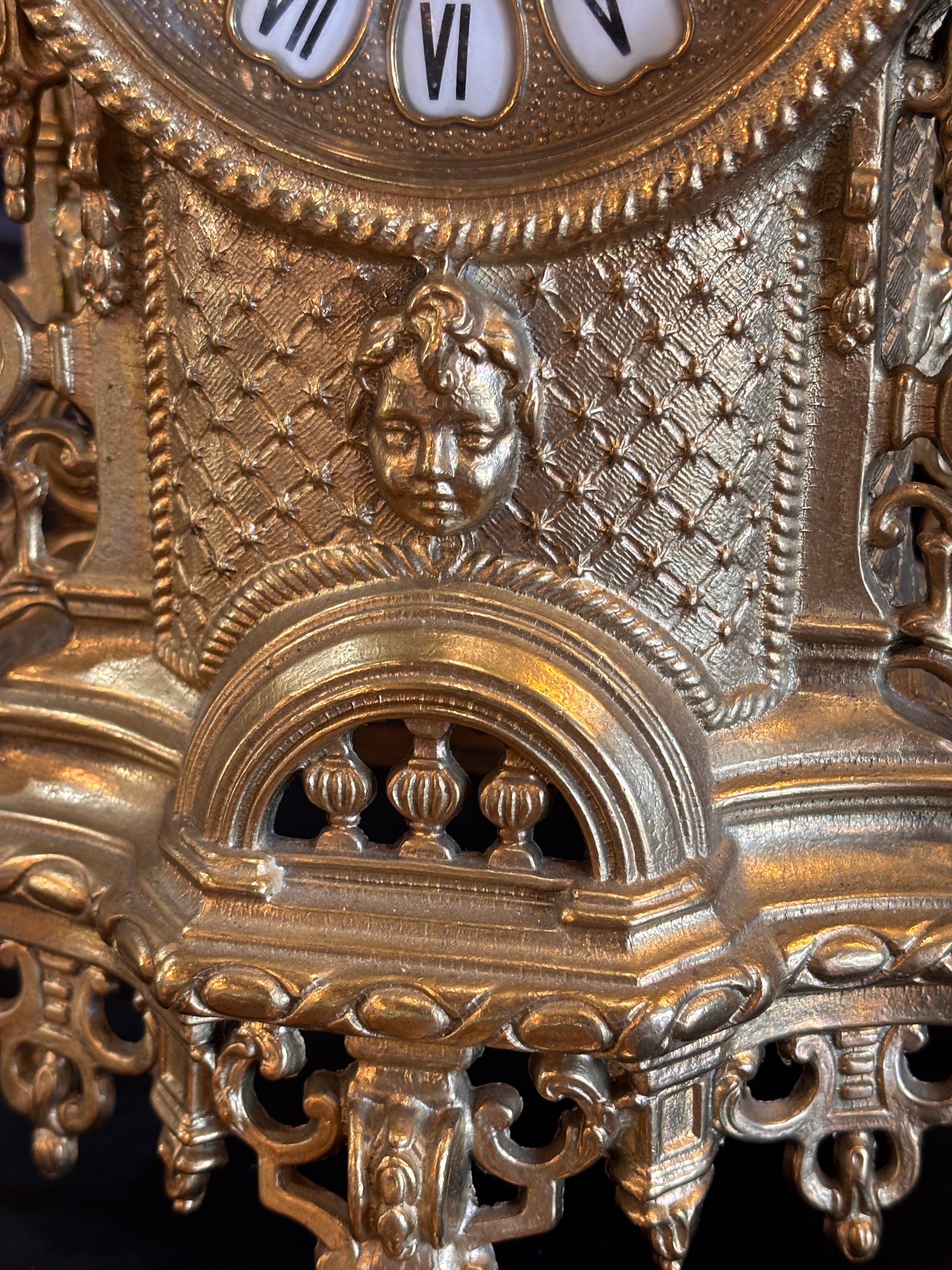 Ornate Brass Mantel Clock with Matching Candelabras – Baroque Style Quartz Clock Set – 41 cm