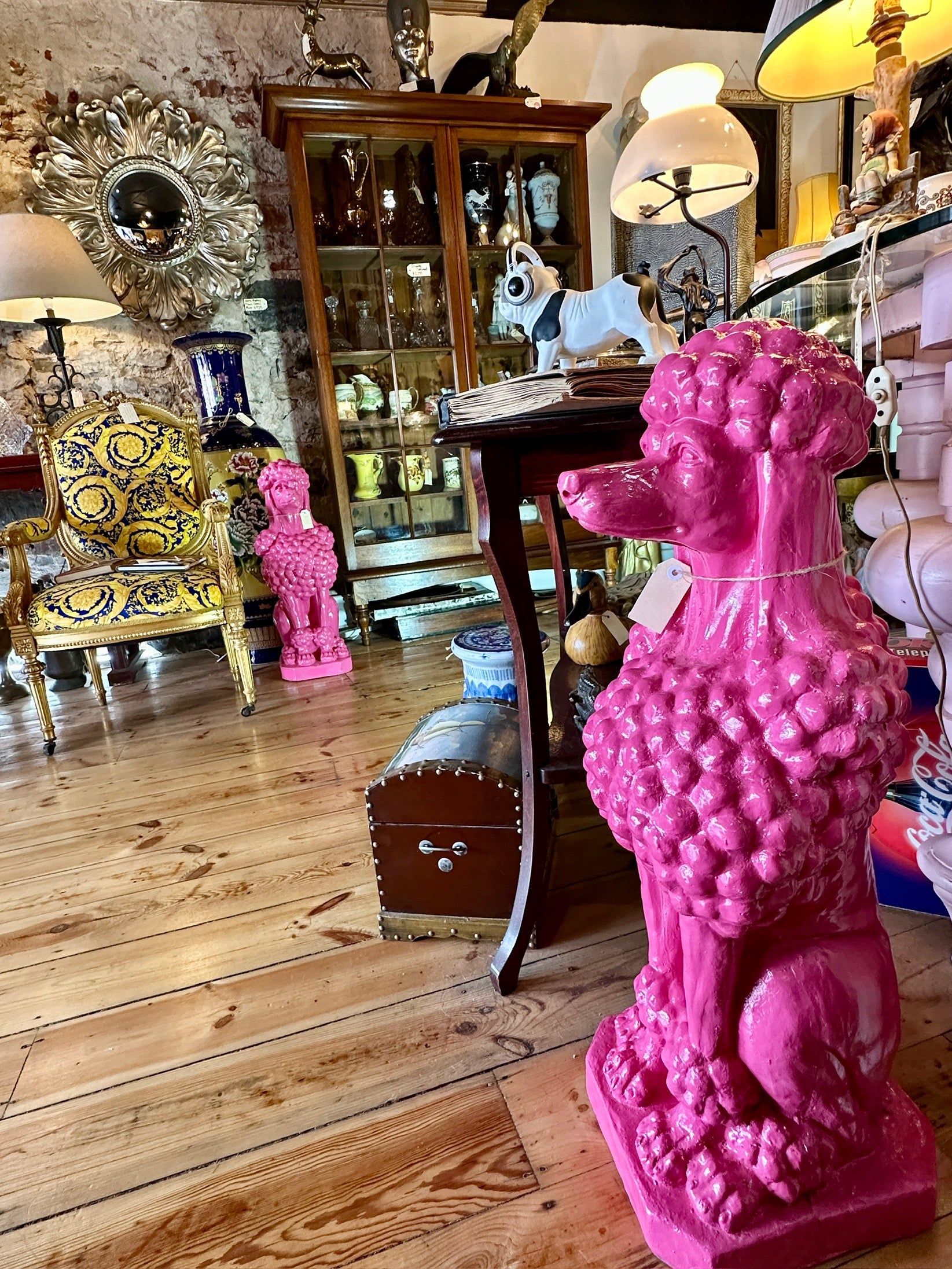 This striking Pink Poodle statue will add a touch of whimsy to any space. Made of durable fibreglass/resin, it stands at approximately 85cm in height. With only one available now, you can create a unique display.