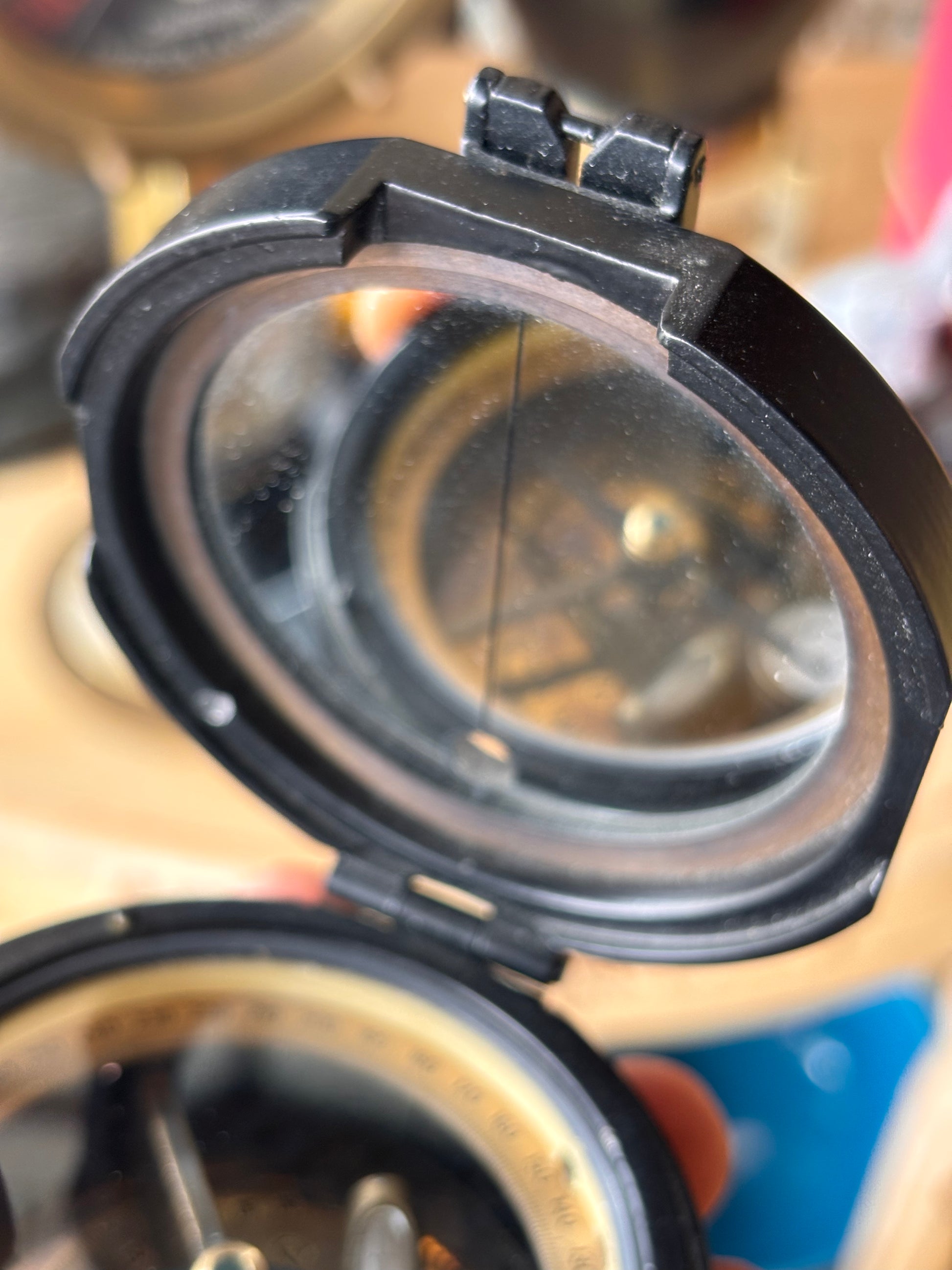 Solid Metal Prismatic Military Style Compass – Brass Interior, Survey Design, Mid-Century Vintage