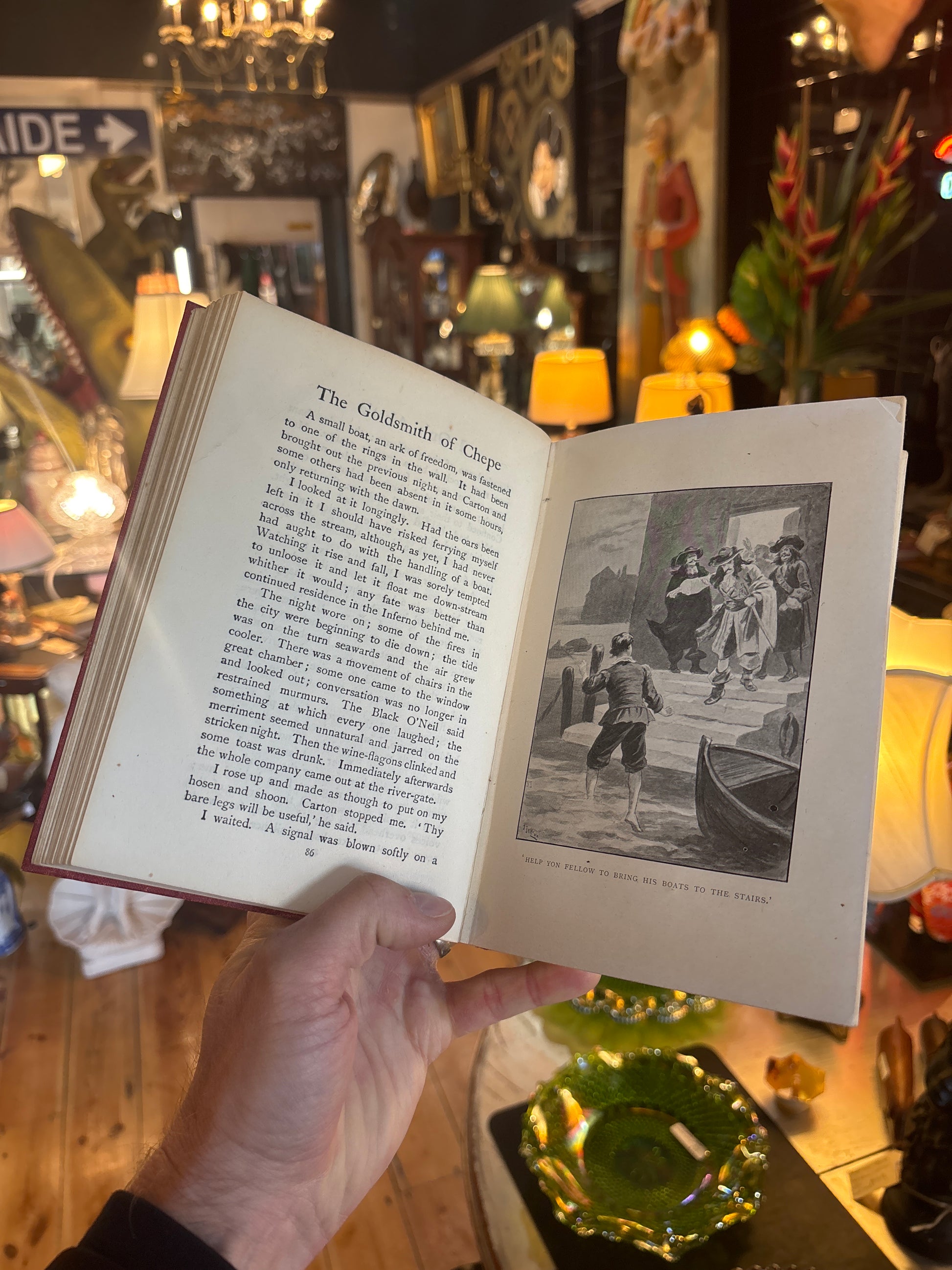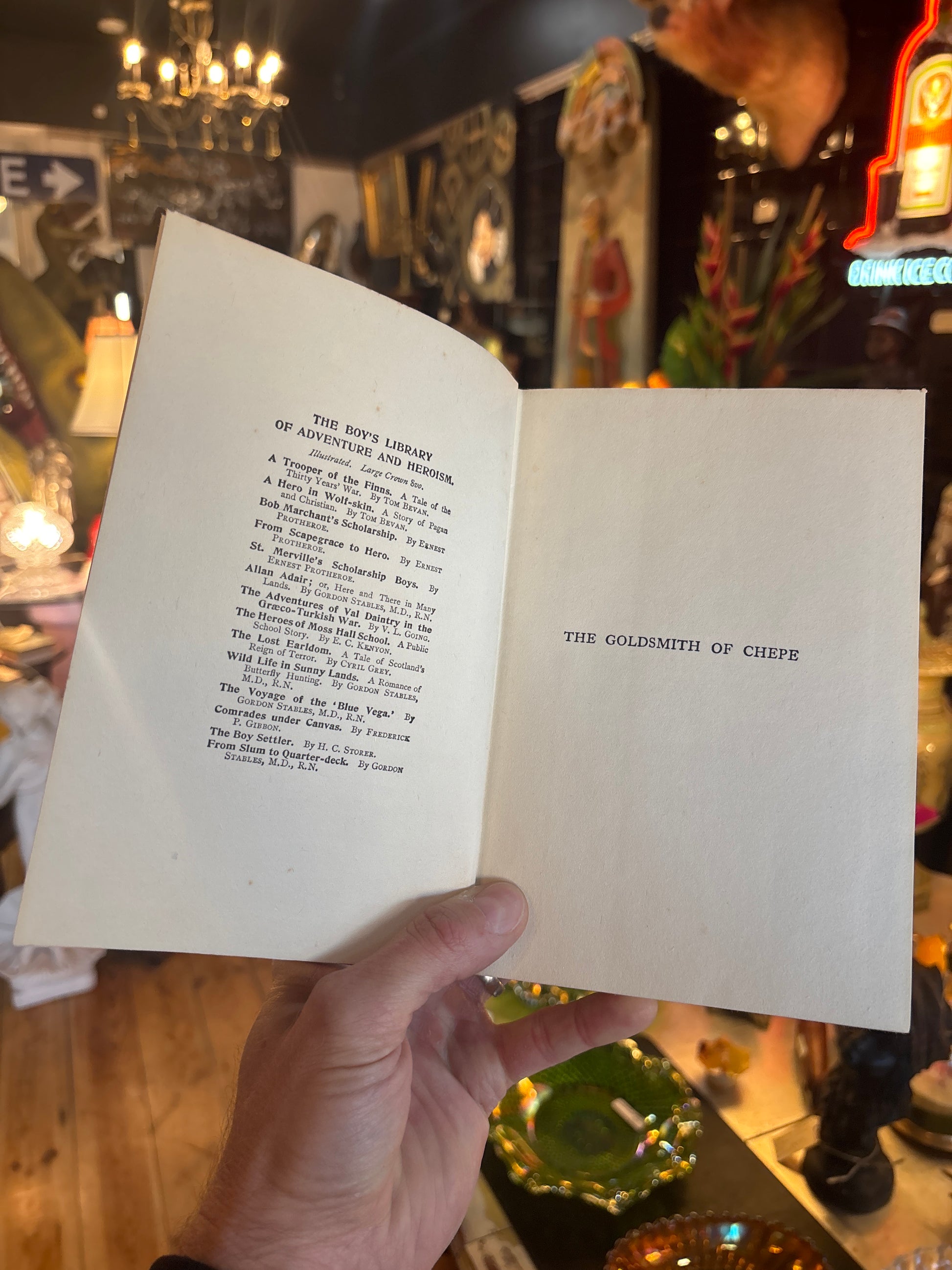A striking Edwardian-era boys’ adventure novel with vivid period cover art and coloured illustrations. The Goldsmith of Chepe is a historical tale set during the time of the Great Plague, penned by prolific author Tom Bevan. Published by the Religious Tract Society as part of The Boy’s Library of Adventure and Heroism, this edition is beautifully bound in red pictorial cloth with dramatic harbour-side imagery and vivid typesetting. Includes full-page coloured illustrations and a provenance inscription from 1919.