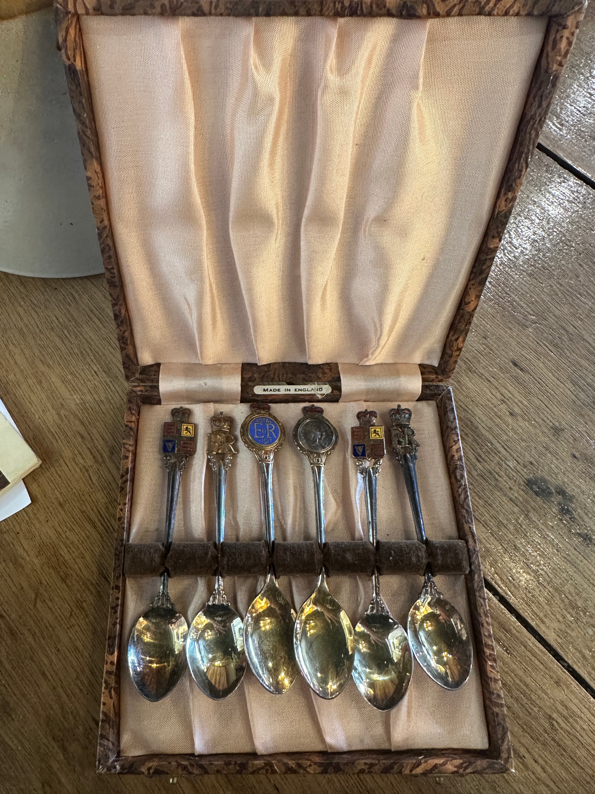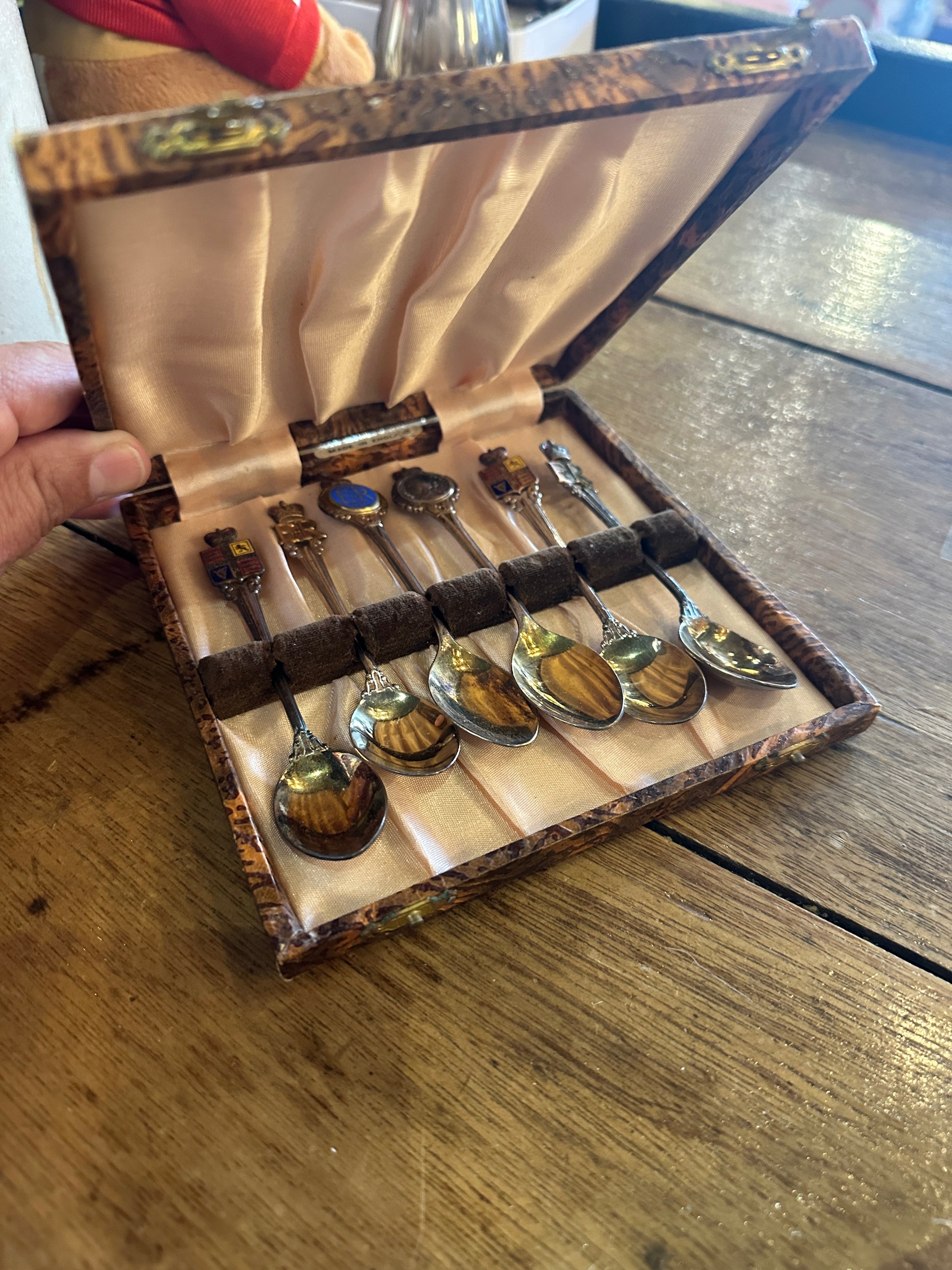 Vintage Set of 6 Silver EPNS Collector Teaspoons in Case