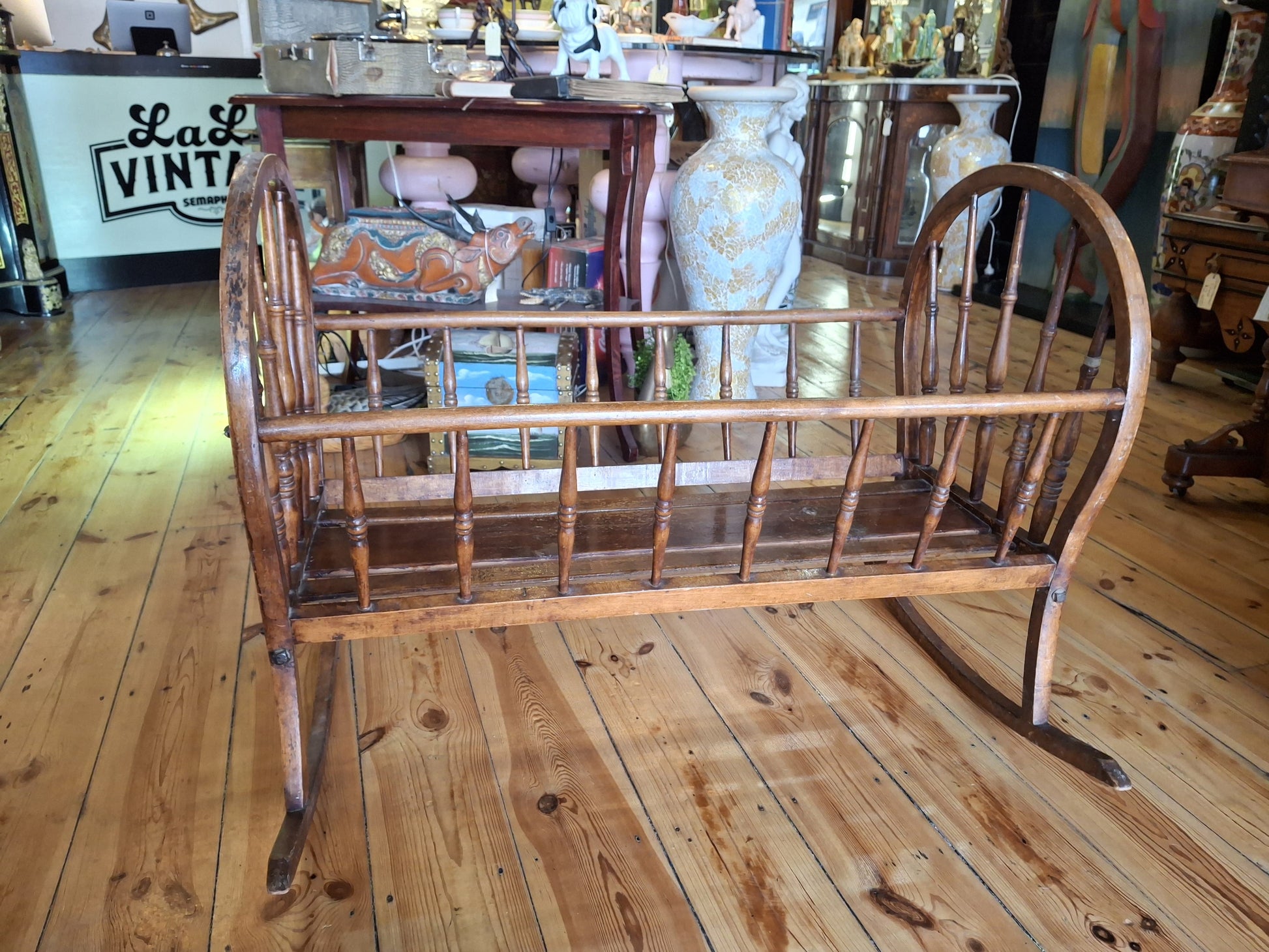 Antique Wooden Baby Cradle (Vintage Rocking Cot)