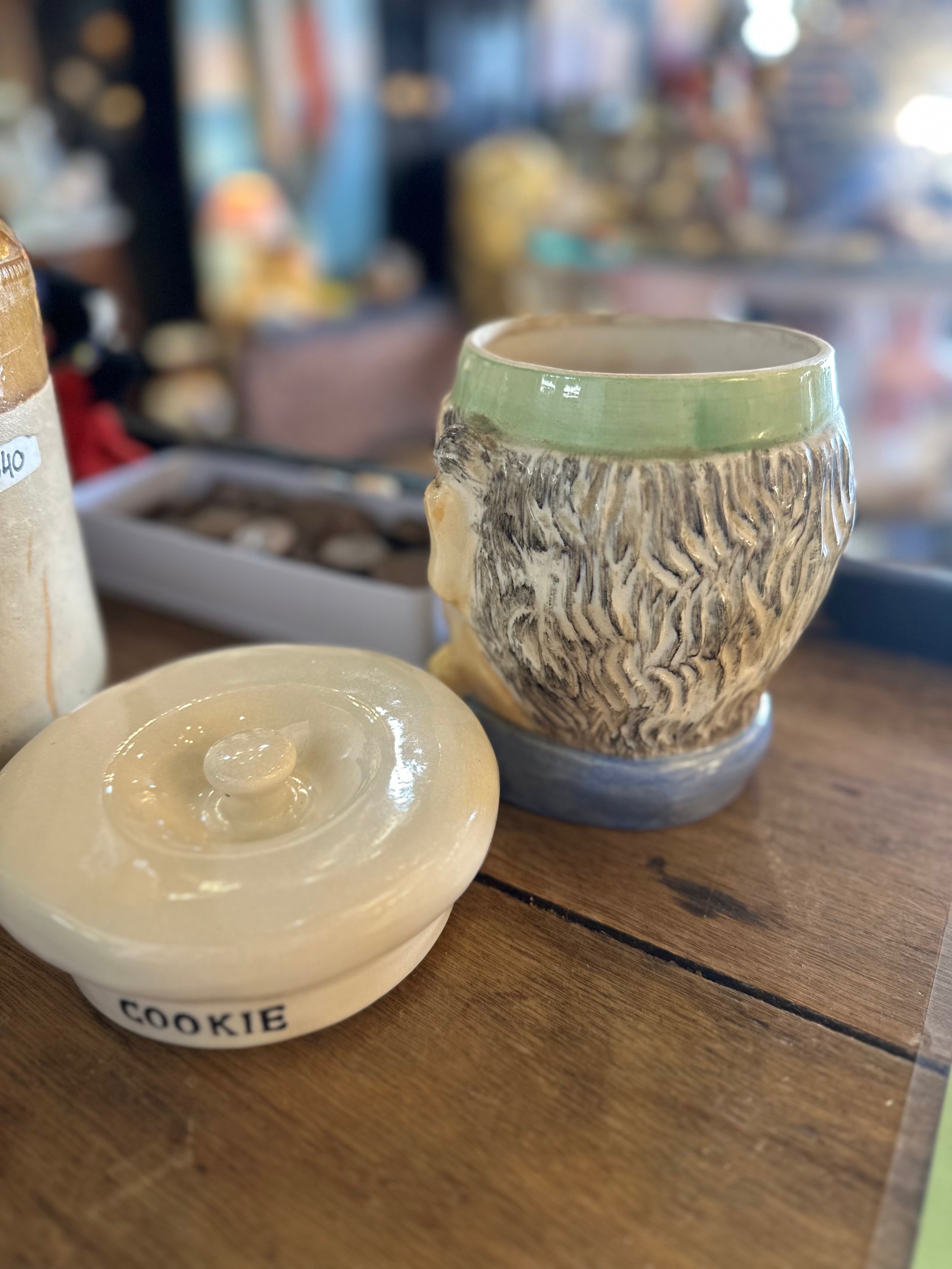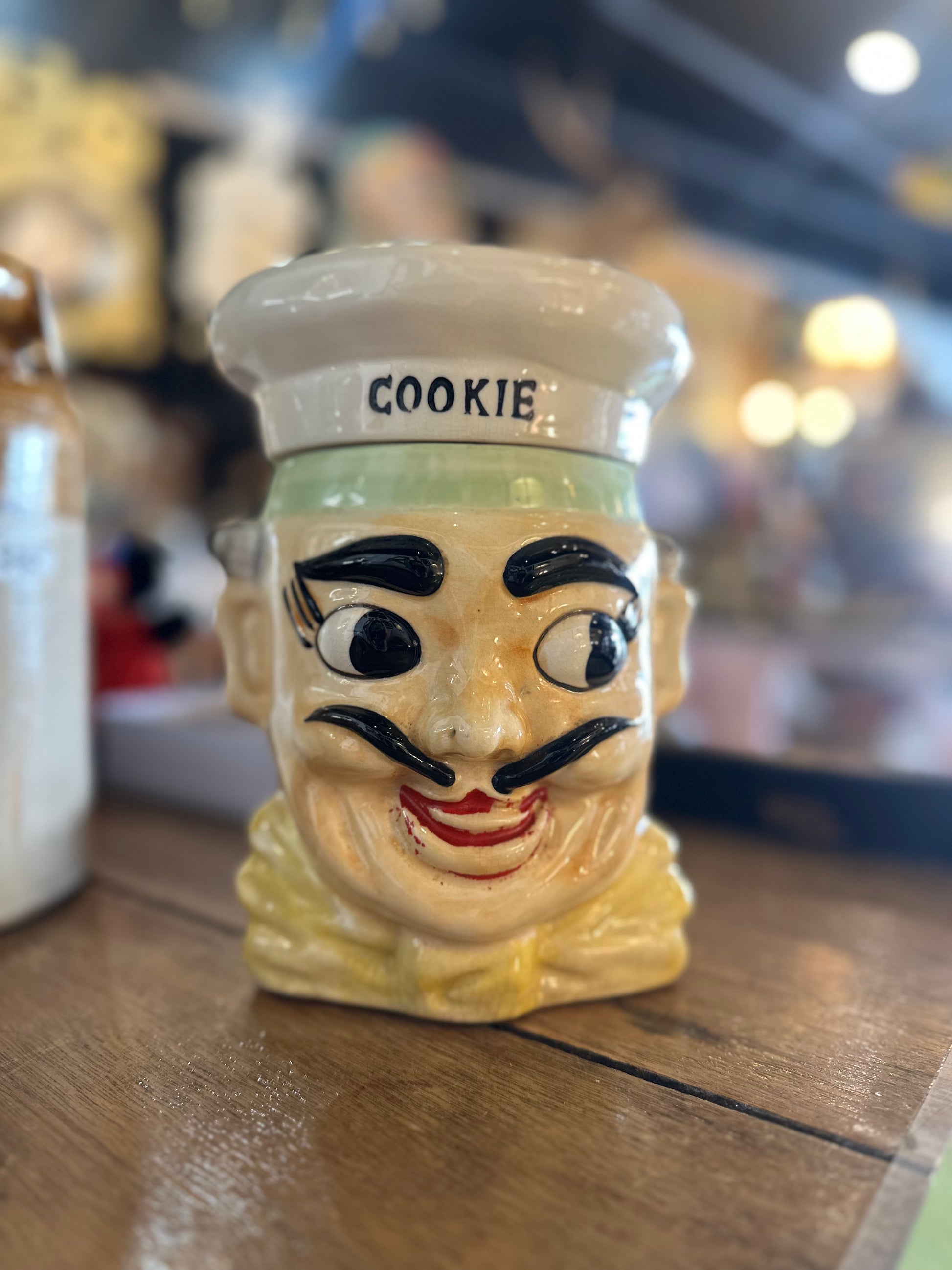 Vintage Chef Head Cookie Jar - 1950s Japanese Ceramic Kitsch - Hand Painted Retro Biscuit Barrel