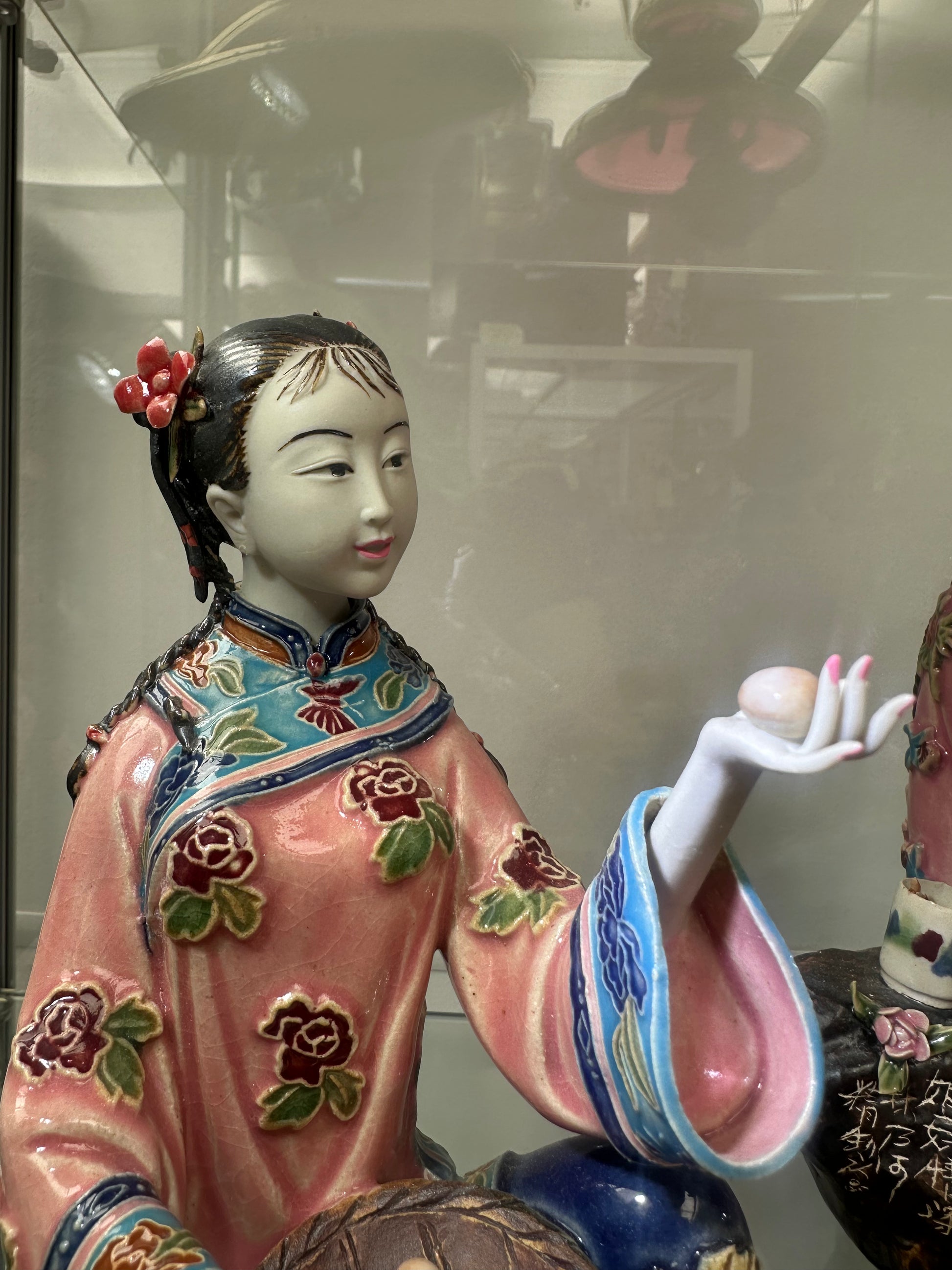 Elevate your collection with this exquisite Vintage Chinese Shiwan (Shekwan) Pottery Figurine, featuring a serene lady in traditional dress feeding a brood of chickens. Handcrafted in the historic ceramic hub of Shiwan, China, this piece showcases the region's legendary "mud man" artistry with a level of detail that is truly captivating.