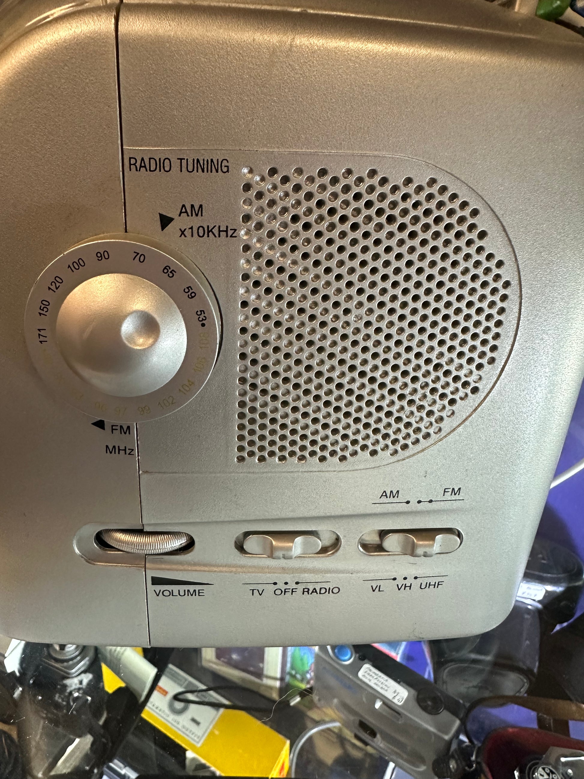 Bring a touch of Y2K "Space Age" futurism to your collection with this GAF BWTV5 Portable TV and Radio Receiver. Featuring a distinctive silver dome-shaped chassis and a clear protective faceplate, this unit is the ultimate crossover piece for retro tech enthusiasts and interior decor collectors.