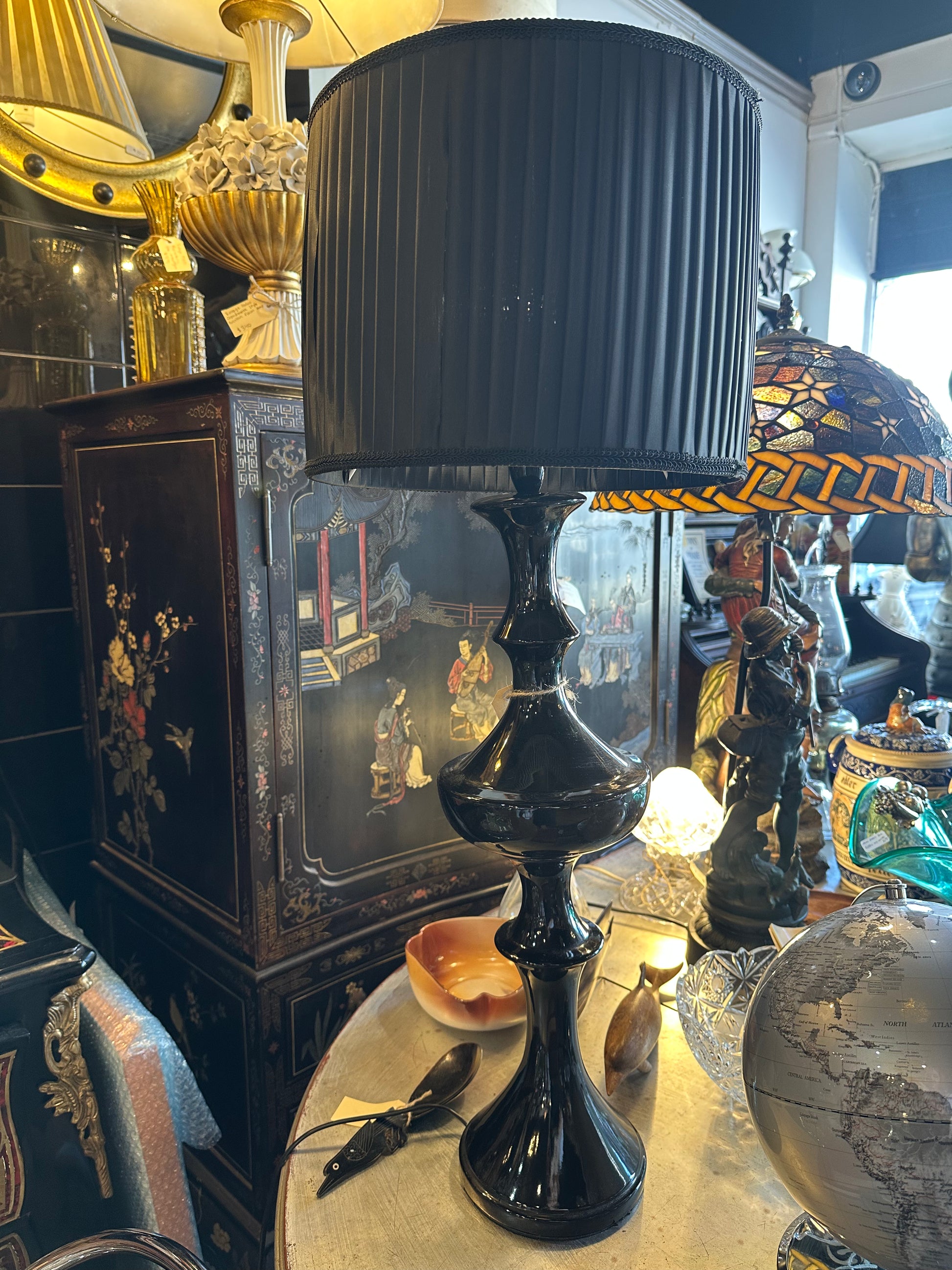 Vintage Mid-Century Black Glass Table Lamp | Hollywood Regency Trophy Urn Style | 1960s MCM Lighting