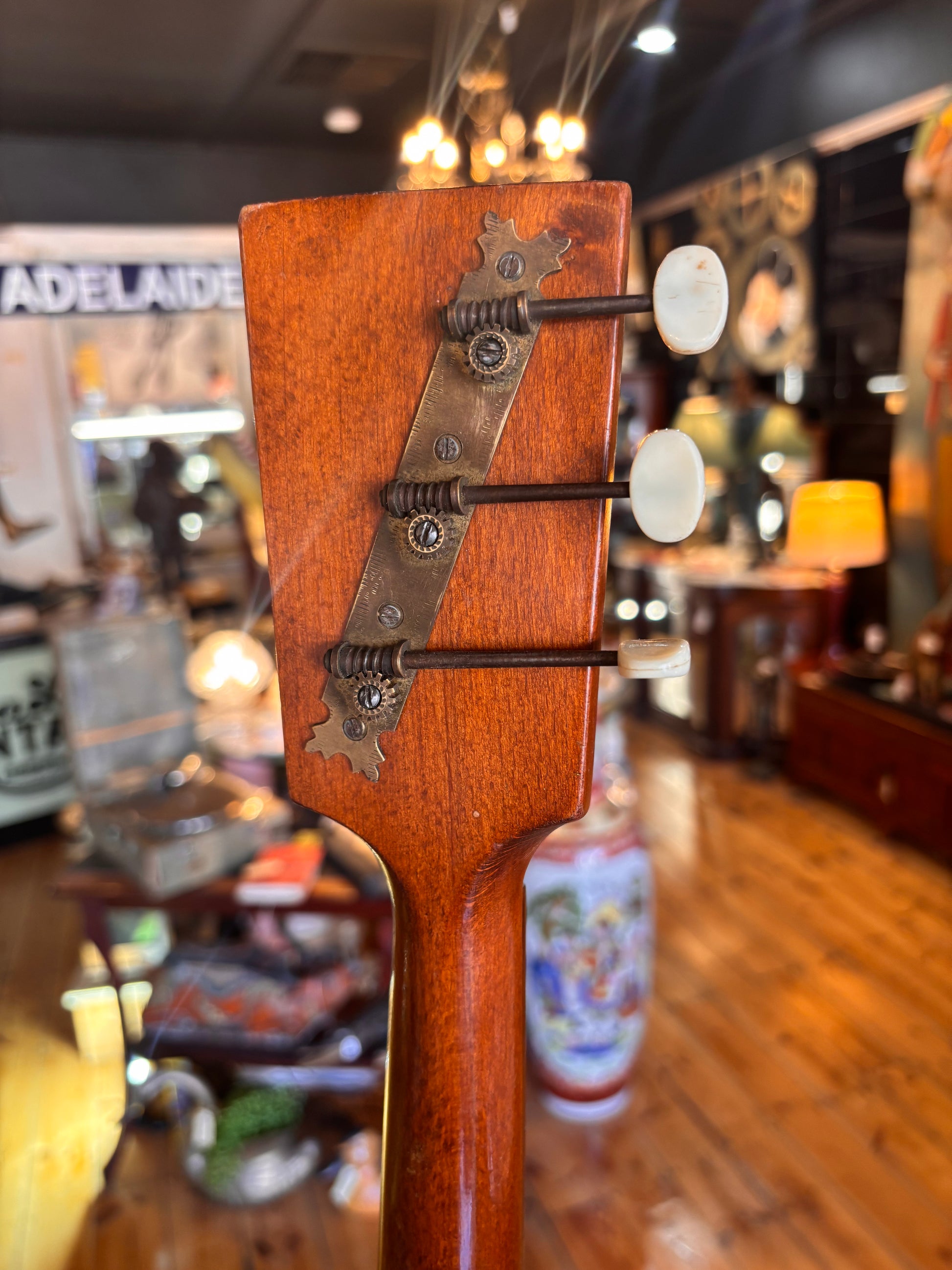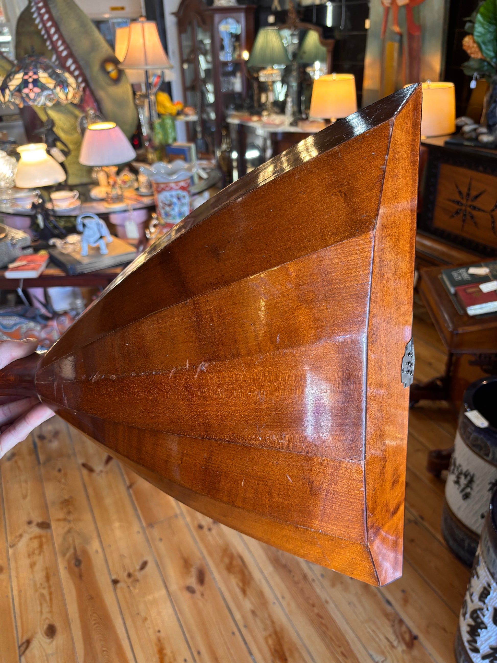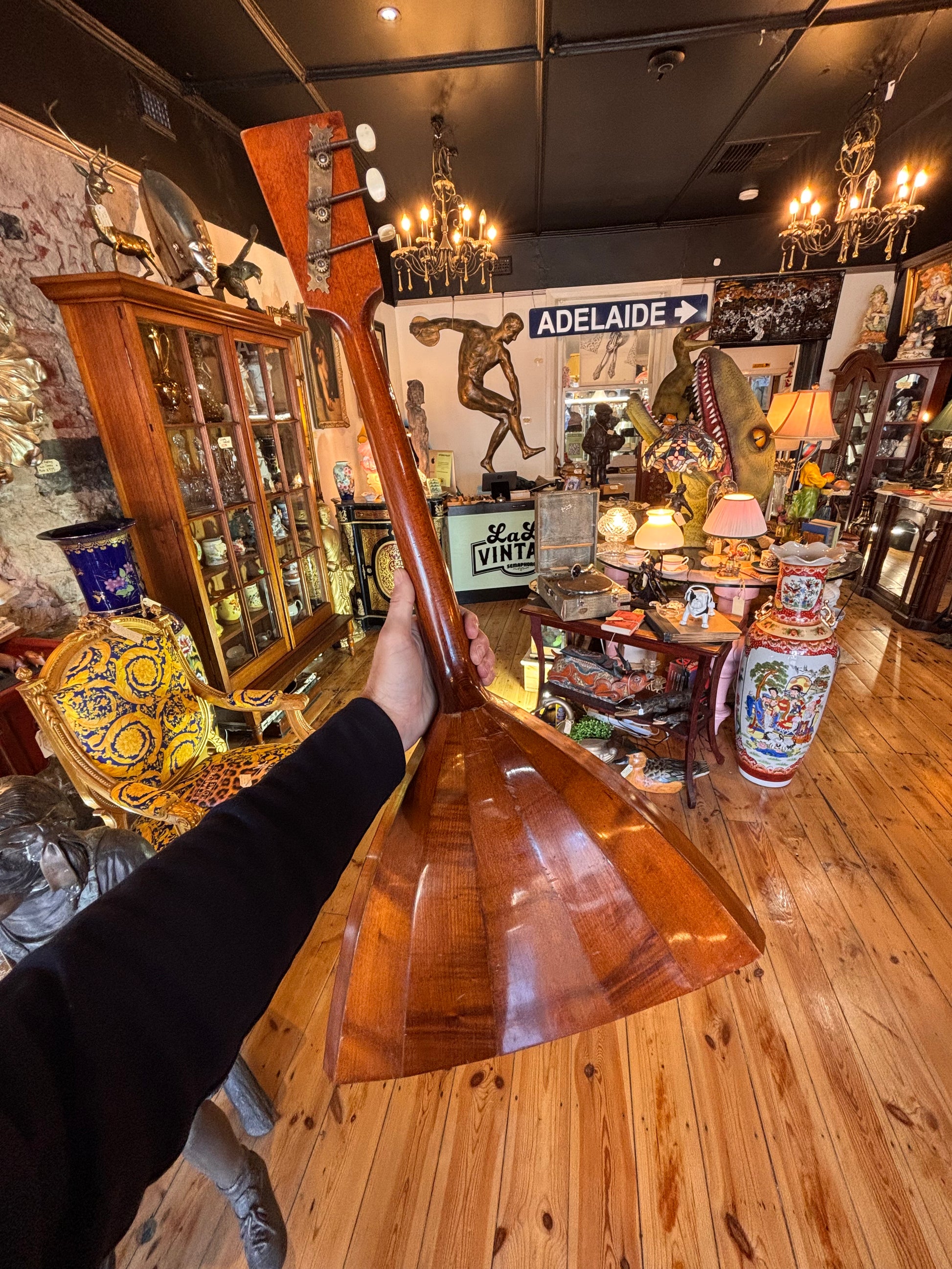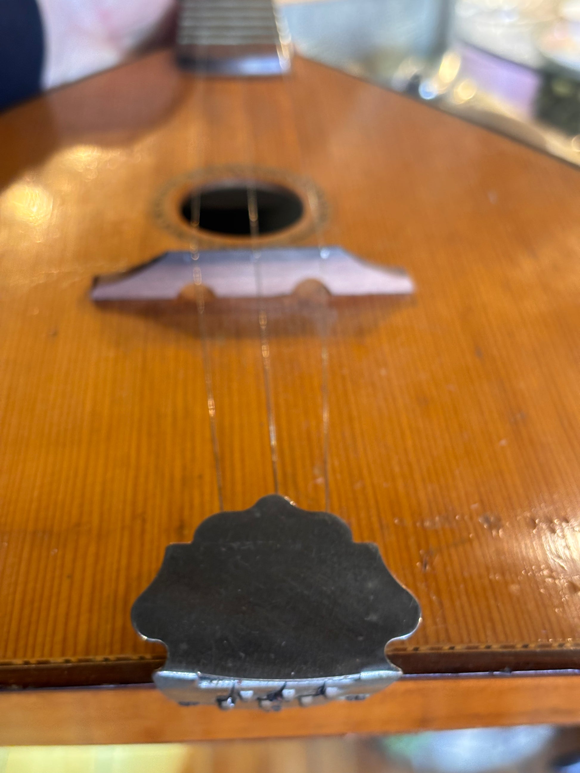 The balalaika is one of Russia’s most iconic instruments, with roots in village folk music and enduring popularity in concert performance. This example, with its striking triangular form and warm honeyed finish, makes both a playable instrument (with restringing and setup) and a beautiful display piece of Soviet-era craftsmanship.