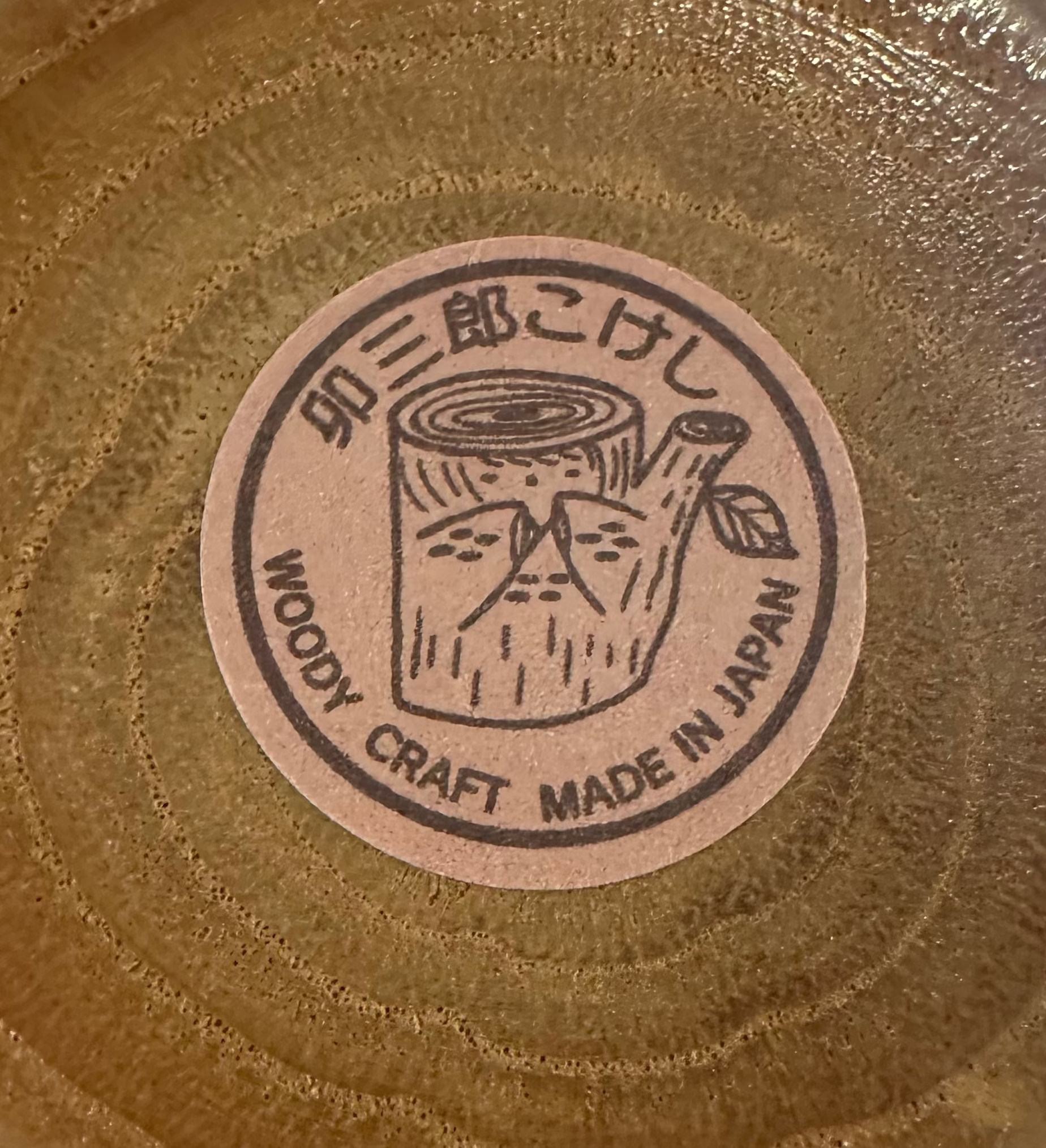 Perfect for collectors of Japanese folk art or as a unique Mid-Century Modern decor piece, this doll bears the original Woody Craft "Made in Japan" sticker and the signature of the Usaburo workshop.